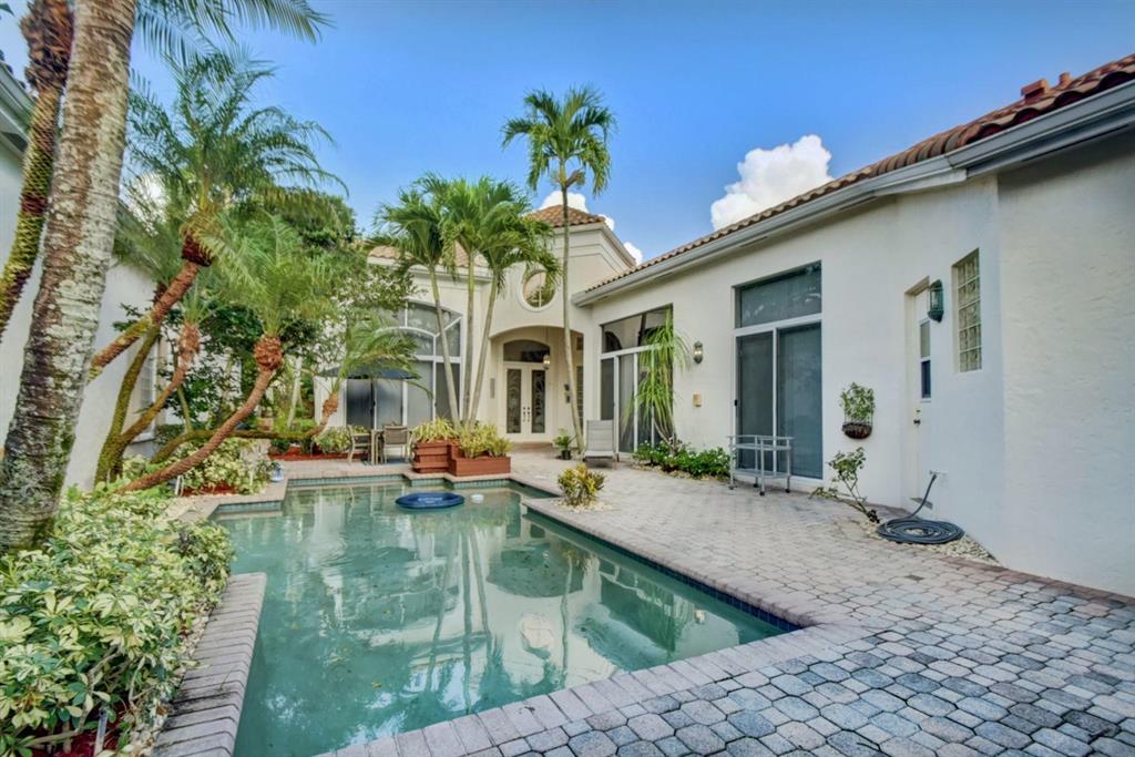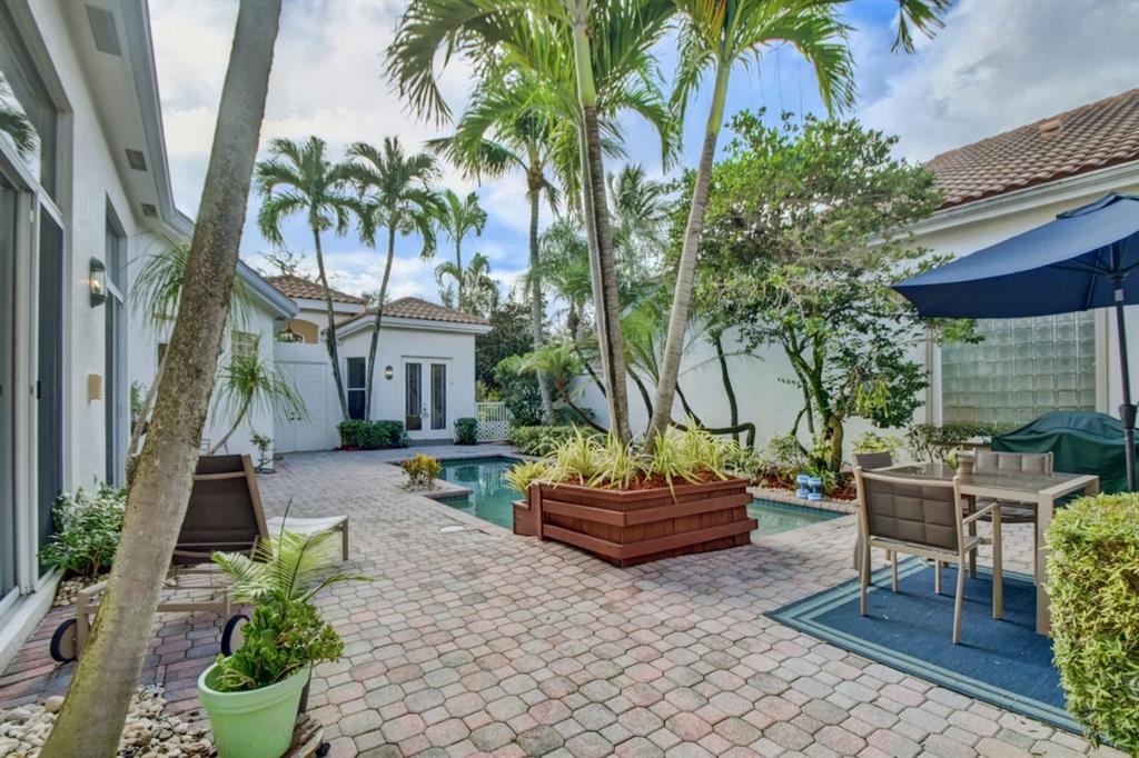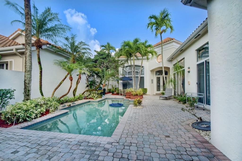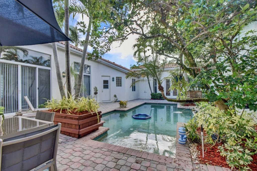 Imagine yourself enjoying a luxurious Broken Sound Country Club lifestyle in this beautiful courtyard home with 3 bedrooms, 3.5 bathrooms, plus a den with built in desk and bookshelves. The interior courtyard with a pool and separate backyard meditation garden is the perfect oasis to entertain your family and friends. The cabana is currently set up as a home art studio and has endless possibilities for a home office, guest suite, or more. Some additional enticing features of this home are granite counter tops, tiled backsplash, neutral colors throughout, lots of natural light, kitchen open to the family room and all with a contemporary flare. This home also features a hot water circulator that produces instant hot water in the owner's suite. This home is priced to sell, don't miss out! Man