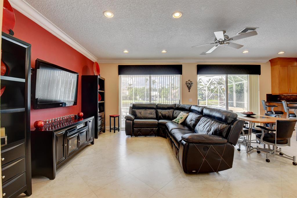 Totally updated Ocean Grande model. Enter this fabulous home through etched double front doors.Expanded kitchen features granite countertops and backsplash and a large island with sink, disposal, wine refrigeraor and electric. Double Thermador convection wall ovens,Thermador cooktop with stainless steel exhaust hood and Bosch dishwaher. Main floor has 24x24 tile on diagonal, 5 1/2 inch baseboards & 8in. crown moldings. Total reno on 2nd fl. in 2020., flooring, bathrooms and ceiling fans. Master has siitting room with private balcony & 2 walk in closets, Central vac,, NO POPCORN, NO CARPETS, Accordion shutters,newer roof. Oversized pool & spa and huge rescreened cage, up to new code. Enjoy Boca Isles resort style living. All schools A rated, Best shopping and restaurants nearby. Must see