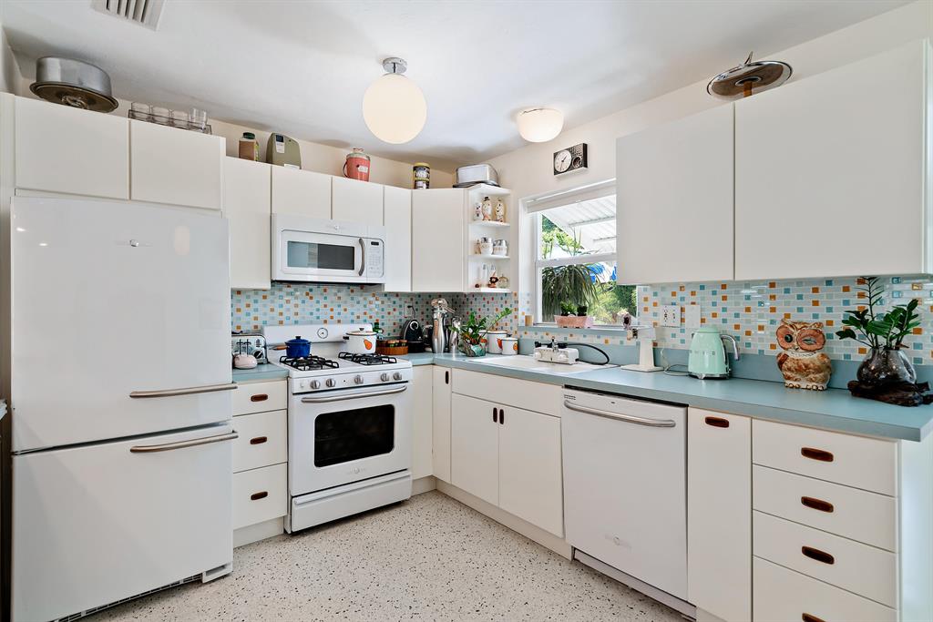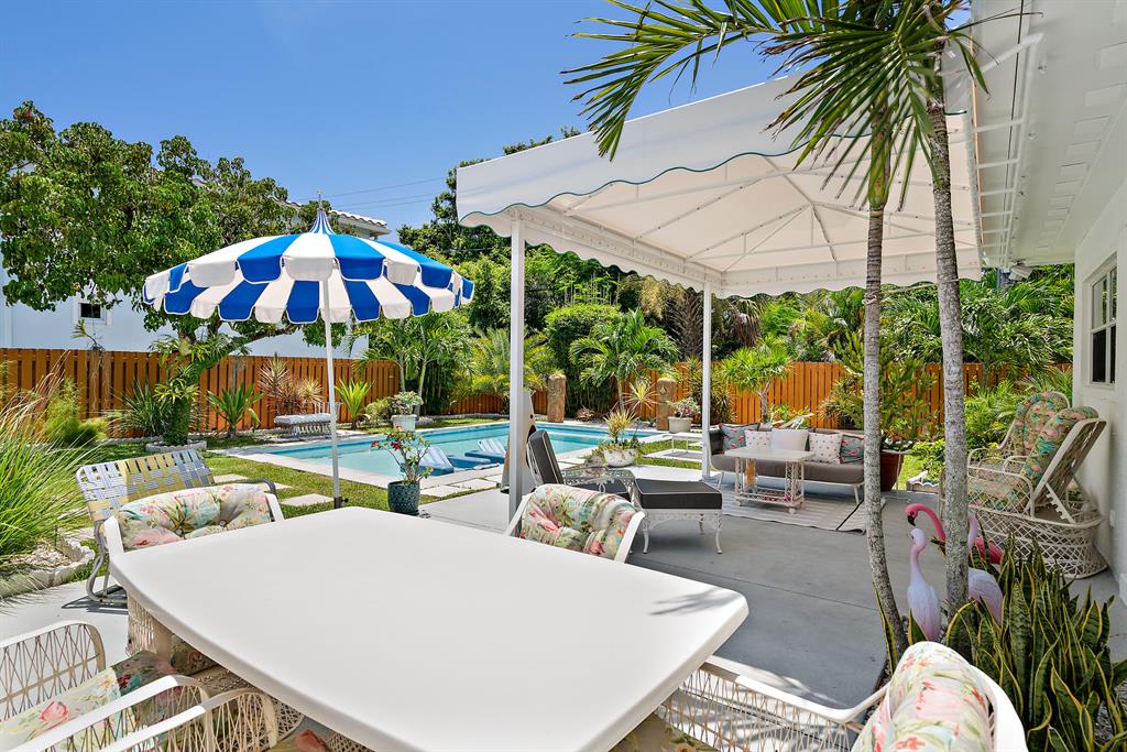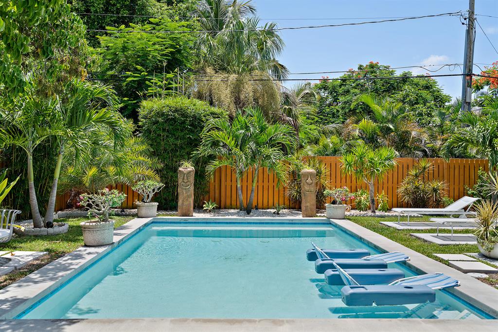 Fantastic 3 bed/2 bath + garage + pool Mid-Century Modern home in 'SoSo'! Situated on an 8,250 sq. ft. lot (75x110), this home is located east of Olive Ave. just a block & a half from the Intracoastal Waterway/Summa Beach/Flagler bike path. Features: 1,794 total sq. ft., 2020 metal roof, CBS construction, charming (gas) fireplace, Retro kitchen, Nest doorbell, natural gas, Master Suite overlooking the patio/pool, underground electric, salt swimming pool (2017), 2016 AC, circular driveway, front & back sprinklers, lush landscaping, covered patio, double gate w/ space to park boat/jet skis or golf cart. Close to everything; downtown, beaches, Palm Beach island/Worth Ave, P.B Zoo/S. FL. Science Center, Rosemary Square, PBI airport, Brightline station, Antique Row, S. Olive Elementary & more.