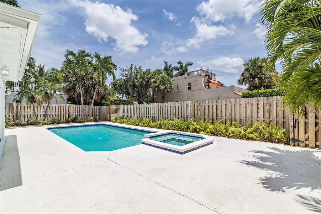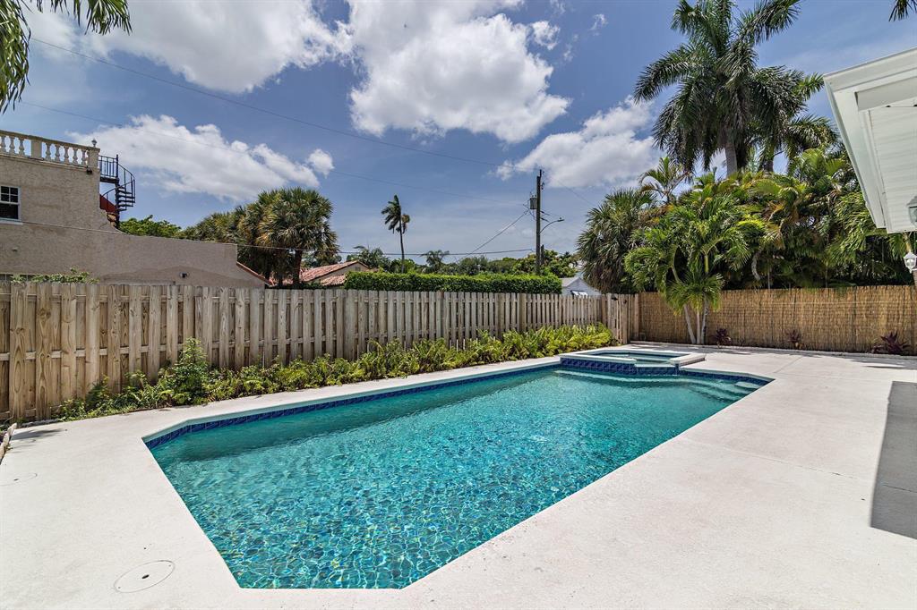 Northwood Shores home just 2 houses off of Flagler Drive! This Midcentury 3BR/2BTH home offers many updates while maintaining the original 1950's features including CBS construction, Florida room, eat-in kitchen, terrazzo floors and nicely maintained, mid-century bathroom tile. The moment you walk in the door the open floor plan and back sliding glass doors bring in the sunlight and allow views of the 30 foot, gas heated pool with 7 X 7 Jacuzzi. The fenced in, beautifully landscaped pool area backs up to 31st Court providing privacy and no back neighbor. Recent upgrades include impact windows, new AC , newer GE Profile stainless steel appliances and freshly painted interior and exterior walls. This outstanding location provides great walking, running or biking along Flagler Drive and