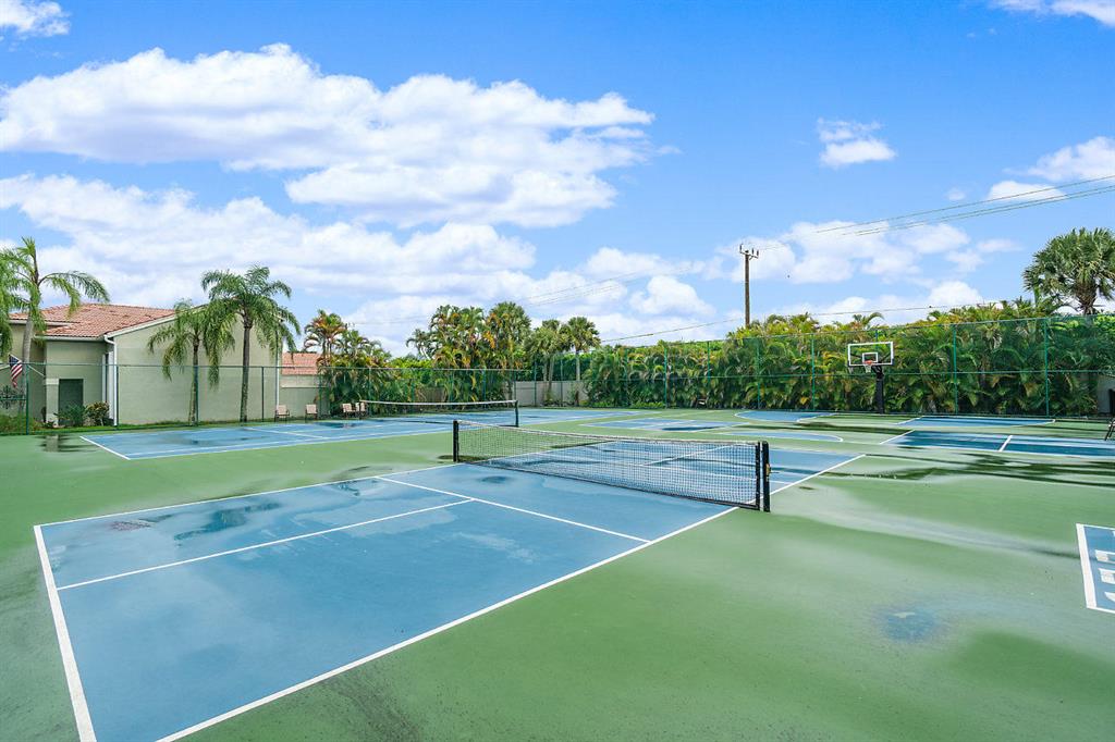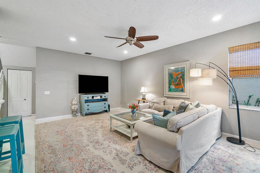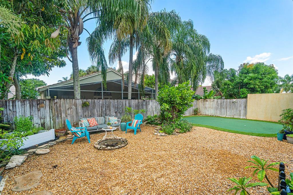 This fabulous home is waiting for you at Symphony Bay in sophisticated Boca Raton. This gated community is a hidden gem not far from the NEW UPTOWN BOCA! This home boasts soaring vaulted ceilings, a light, bright and spacious eat-in kitchen, tile and laminate throughout, formal living and dining areas, an oversized family room and breakfast bar, a huge master bedroom with a walk-in-closet and jacuzzi tub, plus 3 other bedrooms all UPSTAIRS making this home perfect for everyday living and entertaining. Sit outside in your oversized, full length, tiled and screened in covered space while watching the kids make s'mores at the fire pit or practice their golf skills on the putting green.