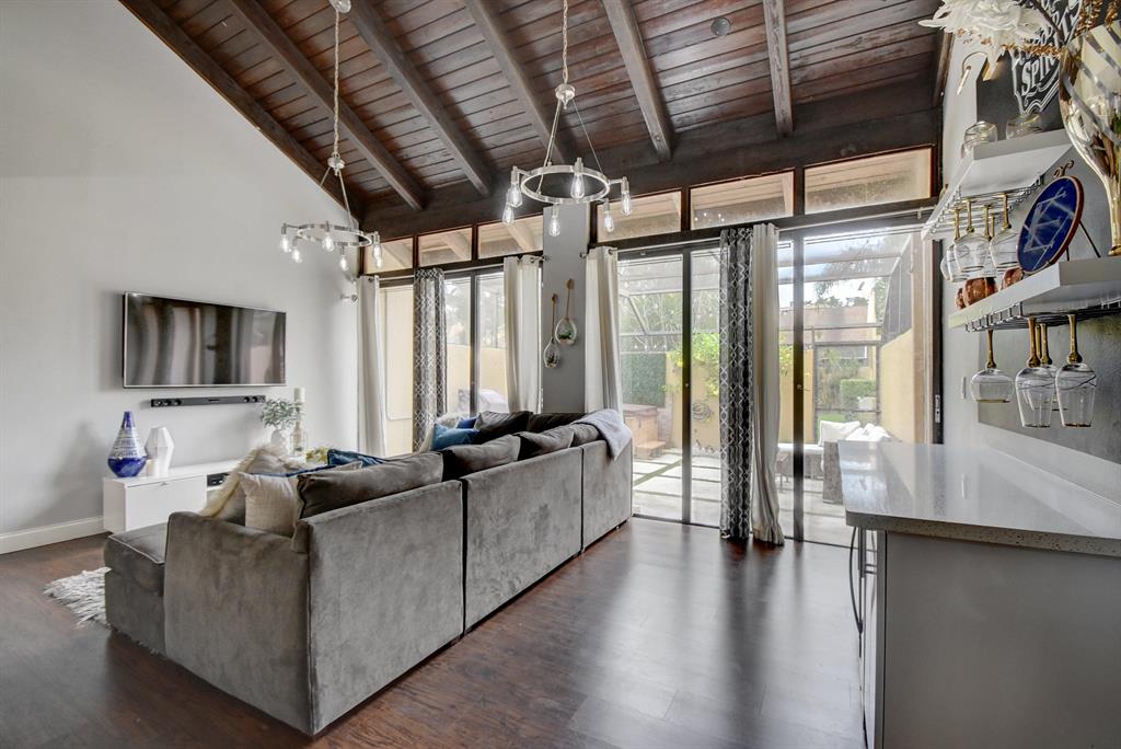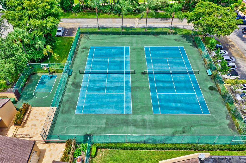 Beautiful Totally updated 2/2 Corner unit Townhouse with Tile & Wood floors, Kitchen with high end cabinets & Quartz Countertops, Stainless Steel Appliances, very close to the community amenities that include a pool, basketball & Tennis courts, 2 large parking spaces right in front of the home plus guest parking spaces in the community, very private large screened in patio with a jacuzzi great location, close to shopping, restaurants & more, open floor plan offers living/dining room, washer & dryer inside unit, All ages & pet friendly, Low HOA fee, MUST SEE! WON'T LAST!