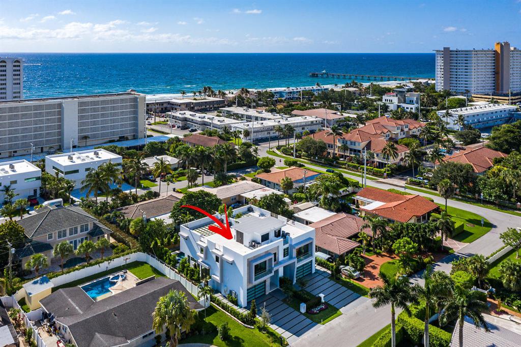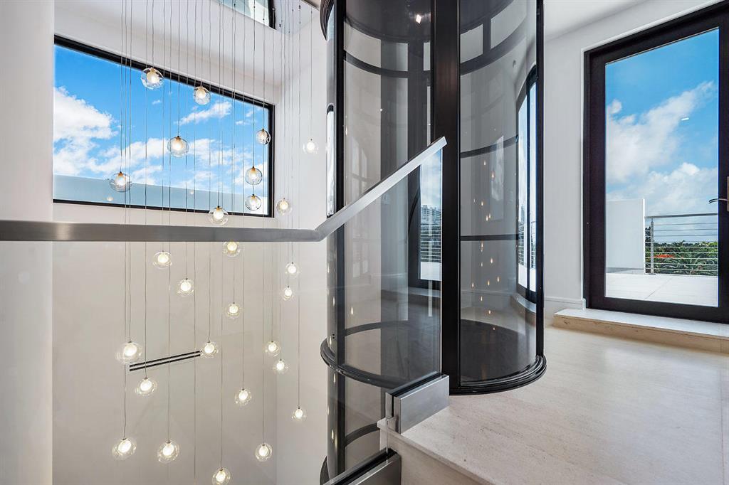 Spectacular Transitional/ Modern New Townhome located only 2 blocks from the Beach. As you enter through the Grand Pivot Entry Door into the foyer, you are greeted by a revolutionary 3 story clear vacuum elevator which transports you to the 2nd and roof top lanai. The first floor of this ''smart house'' features limestone flooring, an open kitchen w/ quartzite Counters, Miele appliances, Liebherr Refrigerator & freezer, and German cabinets which open w/ a touch of your finger. The Large family room w/ an onyx mantled fireplace opens to the covered loggia and pool w/ 11 ft sliders which pocket into the walls. The 2nd floor has a sitting area, 3 bedrooms plus a master suite w/ balcony. The piece de resistance is the 3rd floor roof deck w/ 360 degree views.