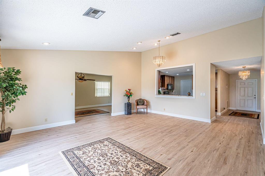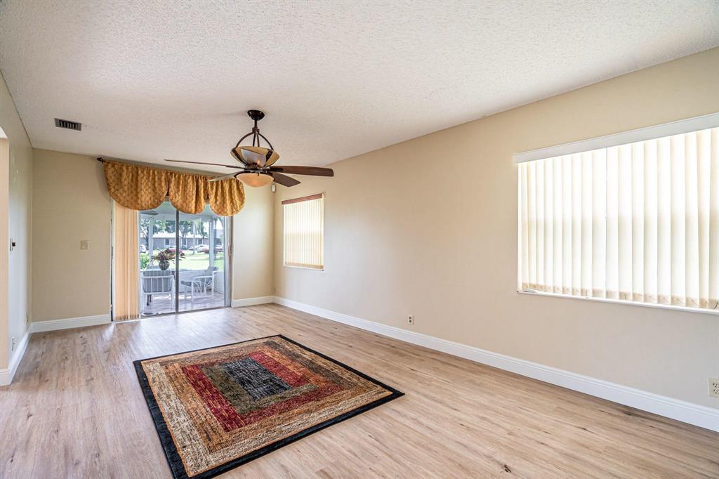 Fabulous mint condition! Single-family home with large den / Florida room, 1 car garage located in well maintained gated golf community. Beautiful grounds and lakes surround you with this golf course view. Home is newly renovated - kitchen and both bathrooms are spectacular, gorgeous flooring throughout, spacious covered patio lets you enjoy the Florida evenings. Volume ceilings, tons of natural light, huge spacious floor plan... This home was loved & well cared for.