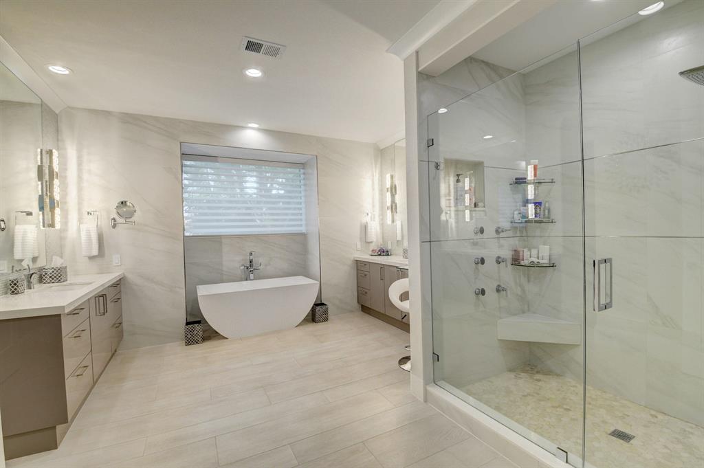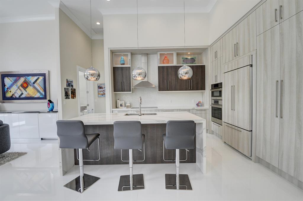 This fully renovated one-story, 3-bedroom + office contemporary home in St. Andrews CC has it all! The home was renovated down to the studs in 2016, and the current owner just made additional custom improvements & designer enhancements. The interior is bright and modern, with white glass tile floors, floor-to-ceiling windows and an open, split-bedroom floorplan. Kitchen features quartz countertops, a waterfall island & high-end appliances. Owner's suite has spacious his & her closets and 2 W/Cs. All guest bedrooms are ensuite. The home features a full-house generator, custom automated window treatments, new AC ductwork, all new pool equipment, and much more. Outdoor patio has new marble pavers, built-in BBQ, a newly resurfaced pool, and lovely golf course views.