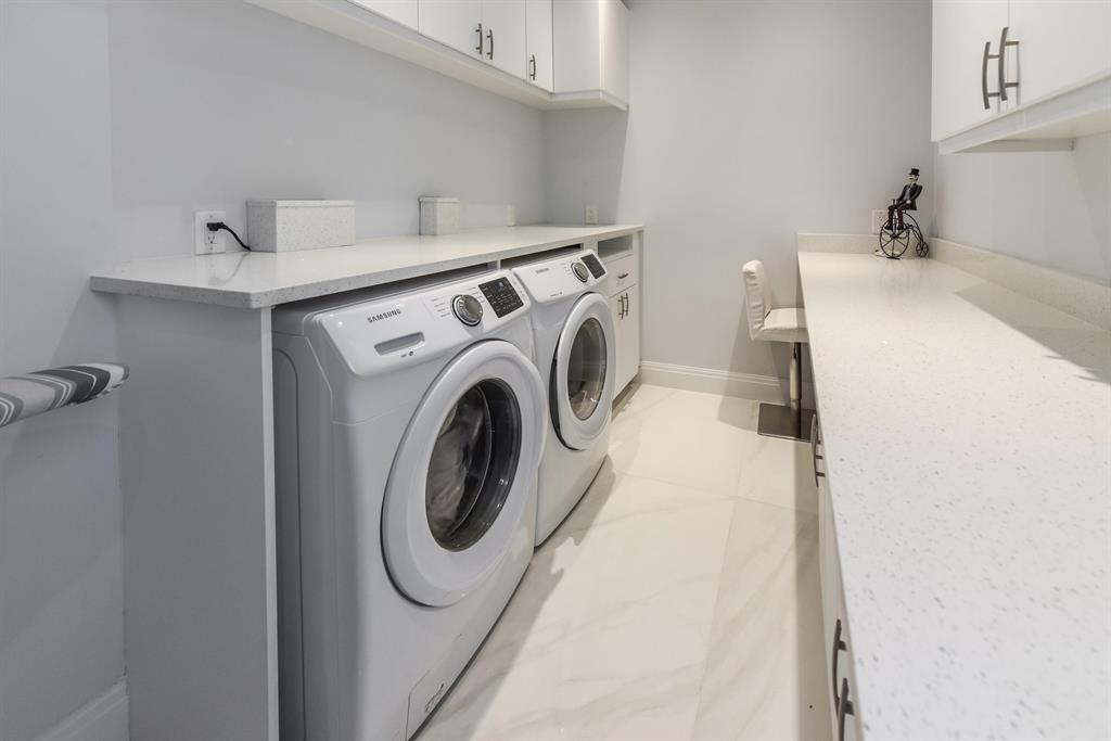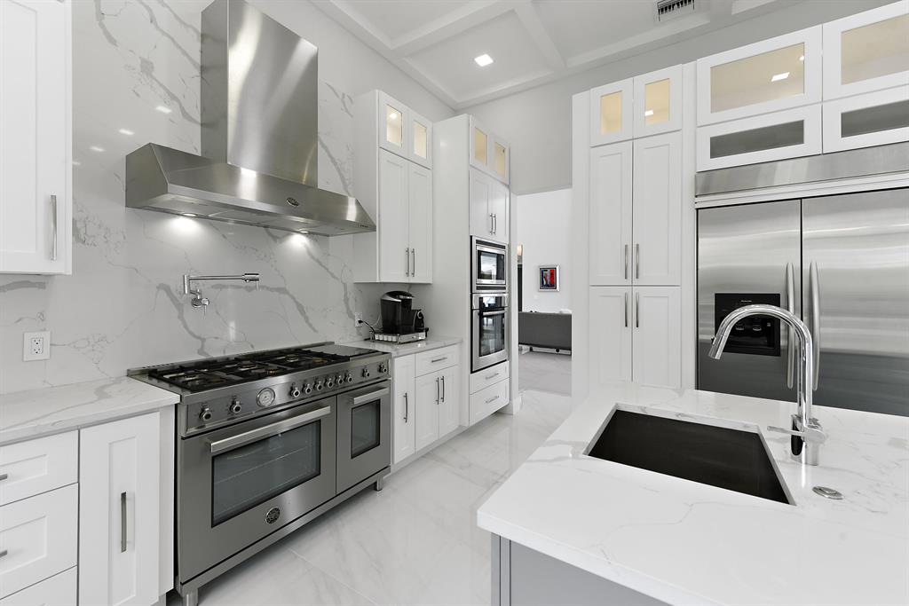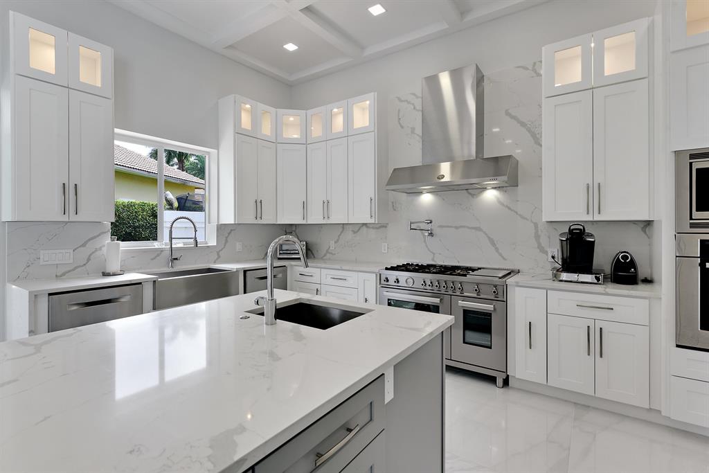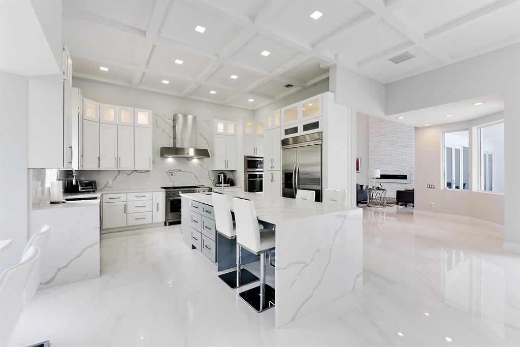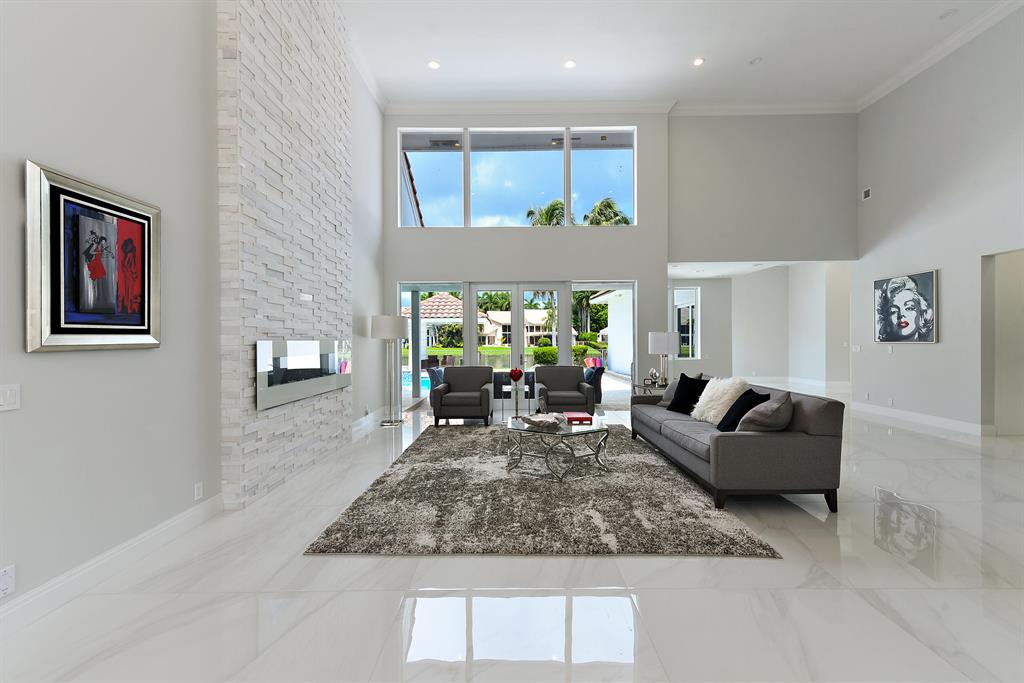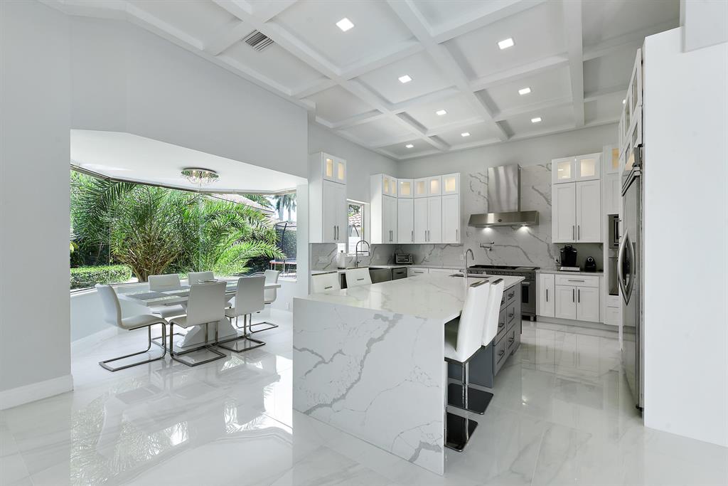 Situated on beautiful 1/2 acre lake lot and totally renovated this elegant 5 bedroom, 6.1 baths residence with 5,950 sq ft of living area features a spectacular main living area, soaring ceilings and 48 x 48 porcelain floors. A gourmet chef's kitchen includes state of the art appliances, quartz counters and a large center island. The master wing features a master suite with sitting area, his and her marble baths and generously sized and outfitted closets. Also located on the main floor are a handsome wood paneled office, a large media room and 2 guest suites. Two additional guest suites are located upstairs.Outdoors the lushly landscaped property features a dramatic resort style pool. Other features include hurricane resistant glass, and 4 car plus golf cart garage. The information