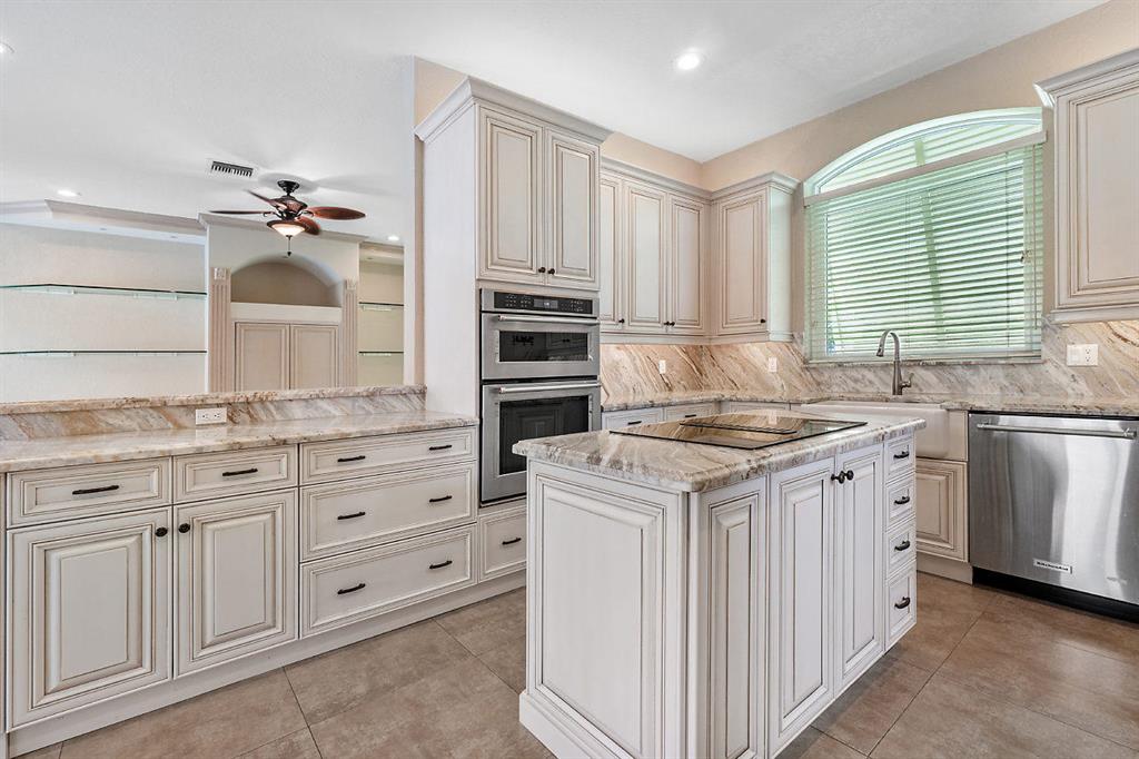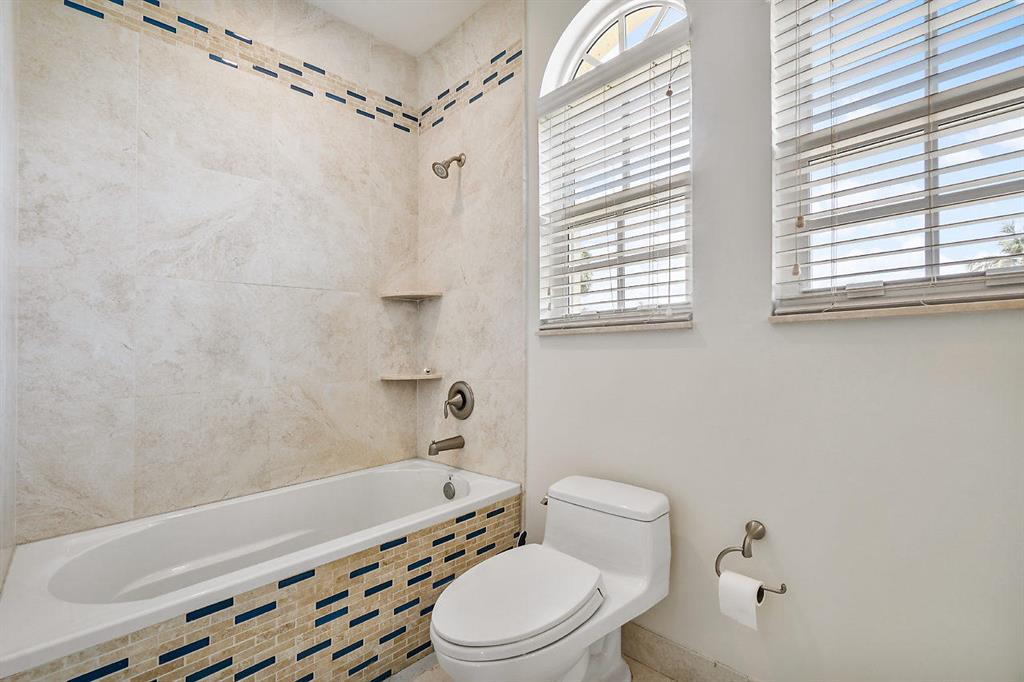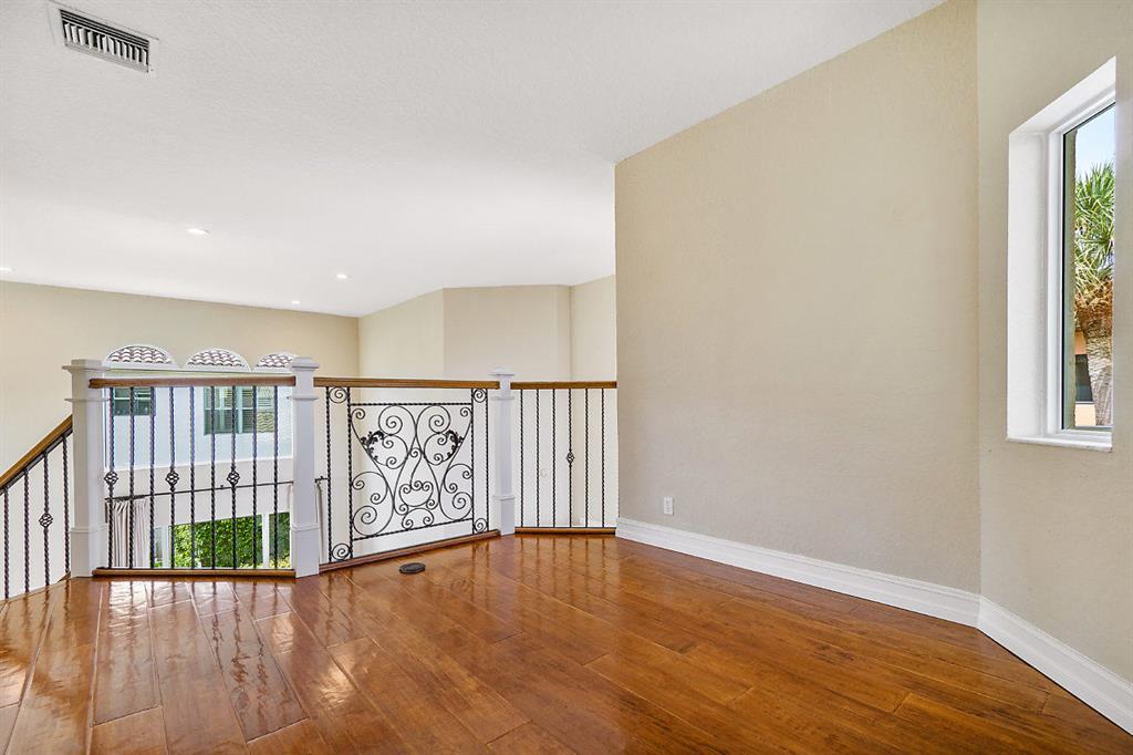 Gorgeous 5 bedroom plus office, 4.5 bath courtyard home on a corner lot in Boca East Estates. The main house features a large bedroom downstairs with a sitting room, walk-in closet and large bathroom with dual sinks and jacuzzi tub. The kitchen was recently updated with 42'' cabinets and quartz countertops. Upstairs features 3 bedrooms, an office, loft and 2 bathrooms. 2 of the upstairs bedrooms share a Jack and Jill bathroom while the 3rd bedroom has its own bathroom. Wood flooring throughout upstairs and each bedroom features a large closet with built-ins. The guest house features 1 bedroom and 1 bath. Hurricane impact glass and doors were recently installed. The roof was replaced at the end of 2016. The pool was just resurfaced a few months ago.