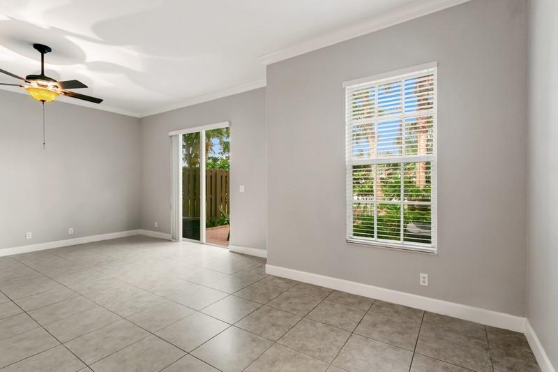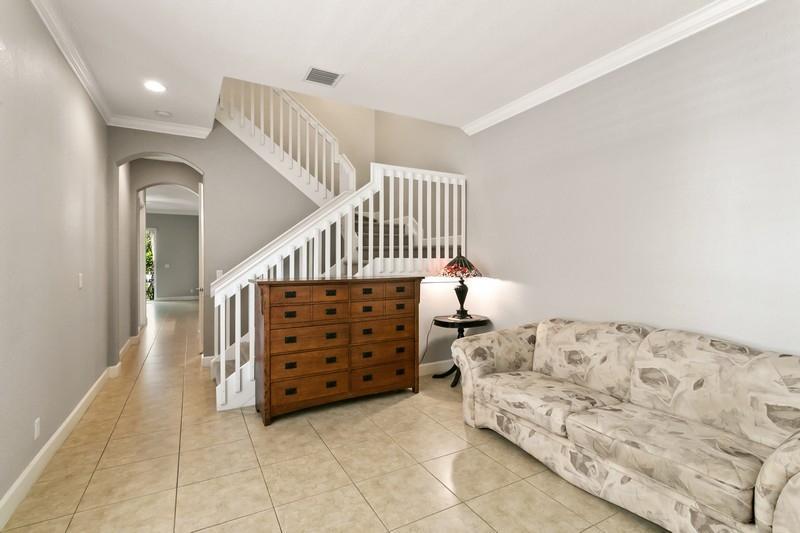 This townhouse at Ventura Greens is spacious and move-in ready. The lower level features ceramic tile, crown molding, galley kitchen with updated appliances, and back patio access. Patio has lighted retractable awning for outdoor enjoyment. The upper level features a master bedroom with walk-in closet, separate stand up shower and dual sinks. Laundry is located upstairs. High impact windows/doors throughout. Attached (1) car garage with pavers driveway for additional parking. Located near the community pool and guest parking. HOA fee includes exterior building insurance.