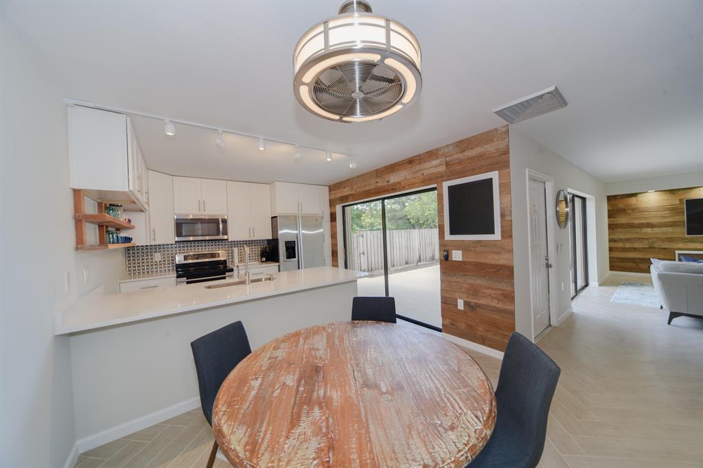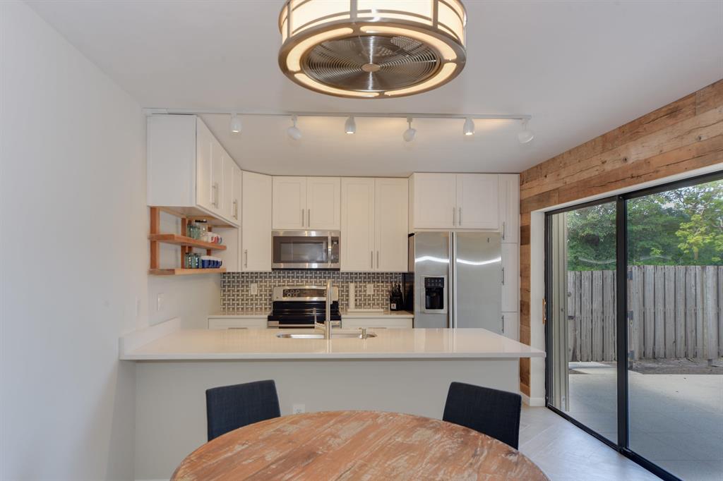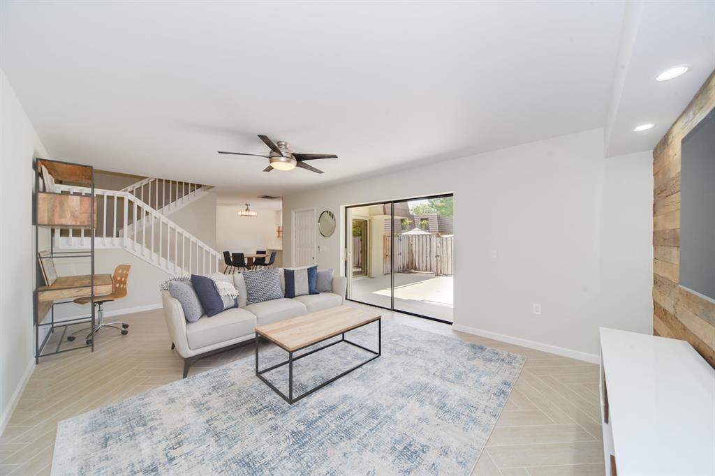 Gorgeous town home in Heritage Village. Completely renovated w/ stylish finishes. Wood-look tile throughout; herringbone on 1st floor. Kitchen: Silestone Quartz countertops, farmhouse sink, custom cabinets, extra shelving, pull-out storage, new garbage disposal, & stainless-steel appliances. Bathrooms: new toilets, Silestone Quartz countertops, new vanities, mirrors, light fixtures, built-in storage cabinets, & walk-in shower. Custom closets, balconies, accordion shutters & storm door - home is solid poured concrete offering peace of mind during storm season. Features: recessed LED lighting, custom oak accent walls, ecosmart tankless water heater (2018), new LG washer/dryer w/ Smart Technology, 2010 AC just serviced w/ new components. Private, breezy courtyard is completely fenced.