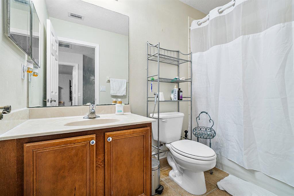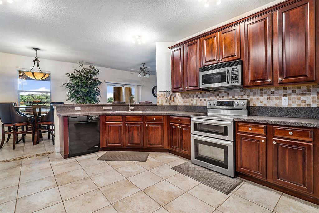 Foyer opens to the family room, kitchen and breakfast nook on the left. Great view of the patio and lake out the slider in the back of the house. Master suite is on the ground floor with access to the patio. The master bath has dual sinks and a separate shower and tub. Upstairs you have three bedrooms and two baths with combination shower/tubs. Kitchen features stainless appliances, pantry and dark formica counter tops. Good view of the breakfast nook and the family room along with the view of the lake in the backyard. This home is in very good condition. the neighborhood is gated and close to shopping, dining, I-95 and the airport is only minutes away. Irrigation system gets its water from the lake not the city!