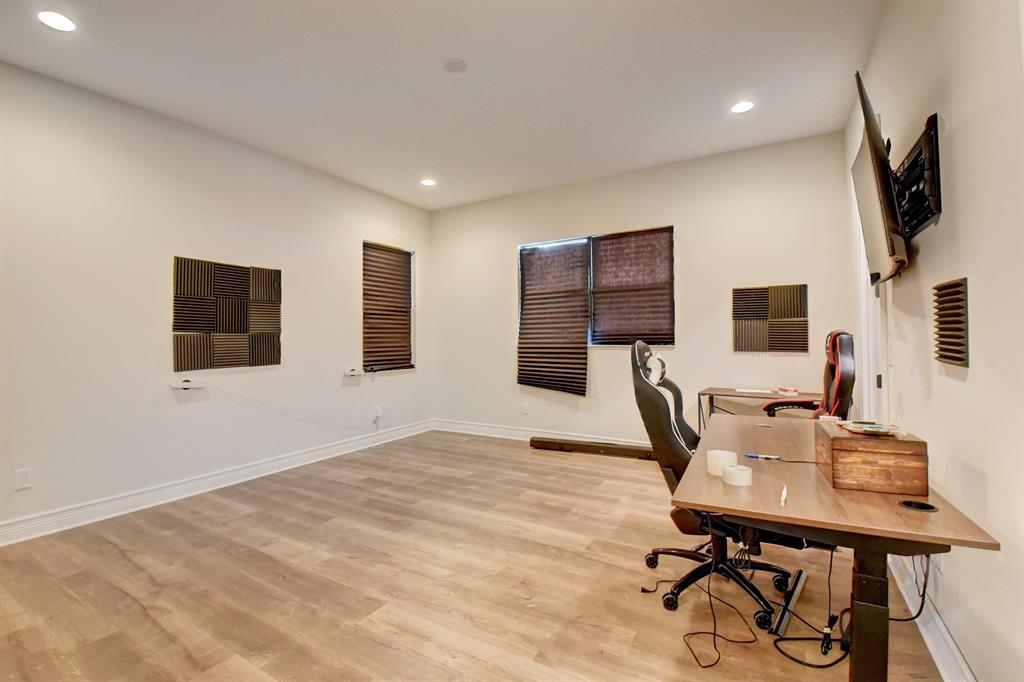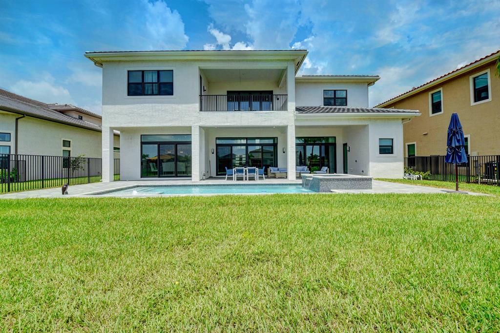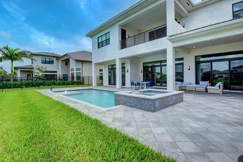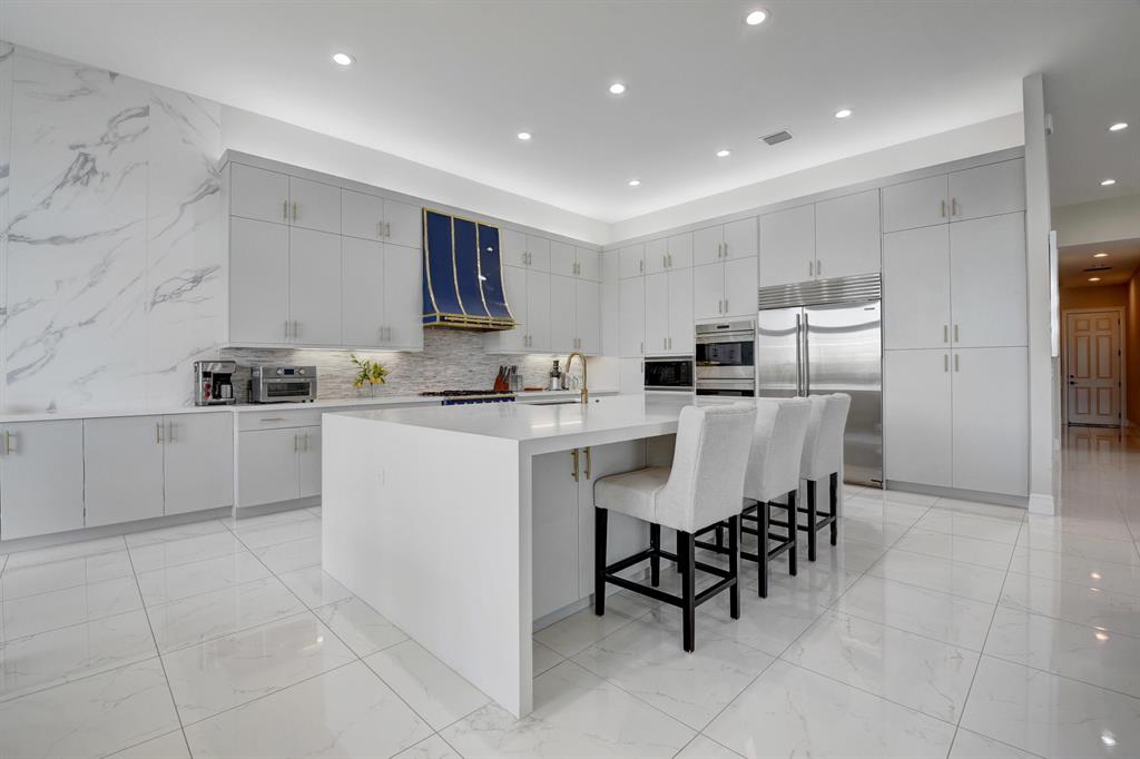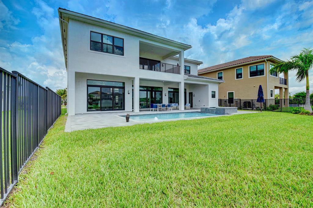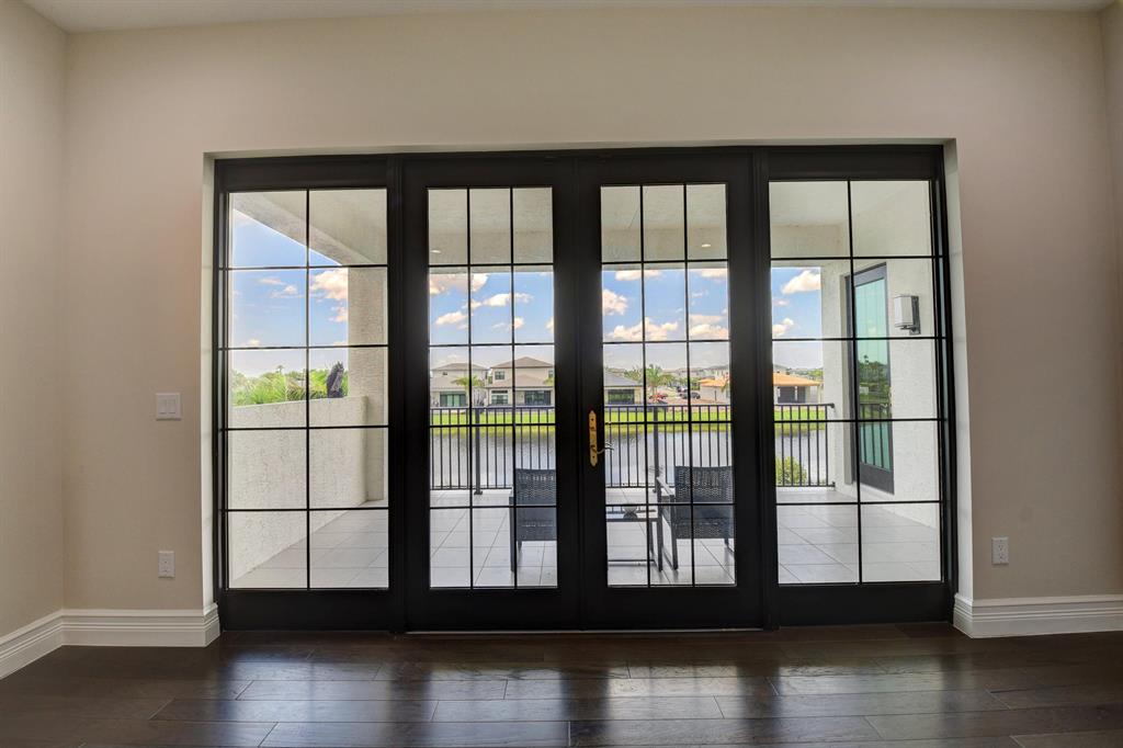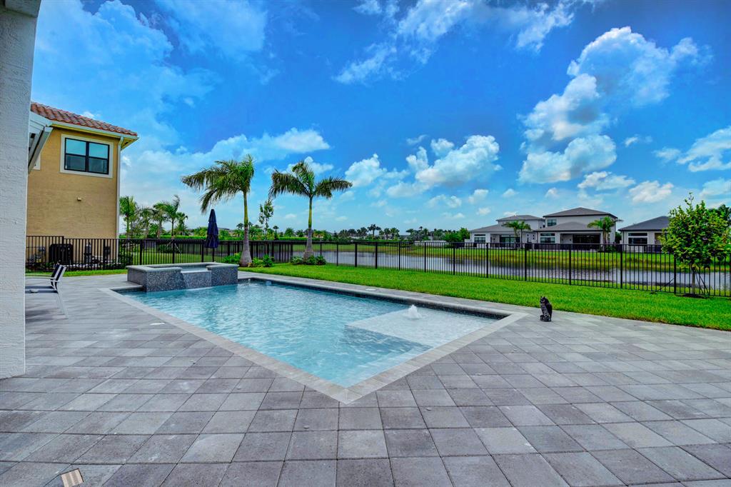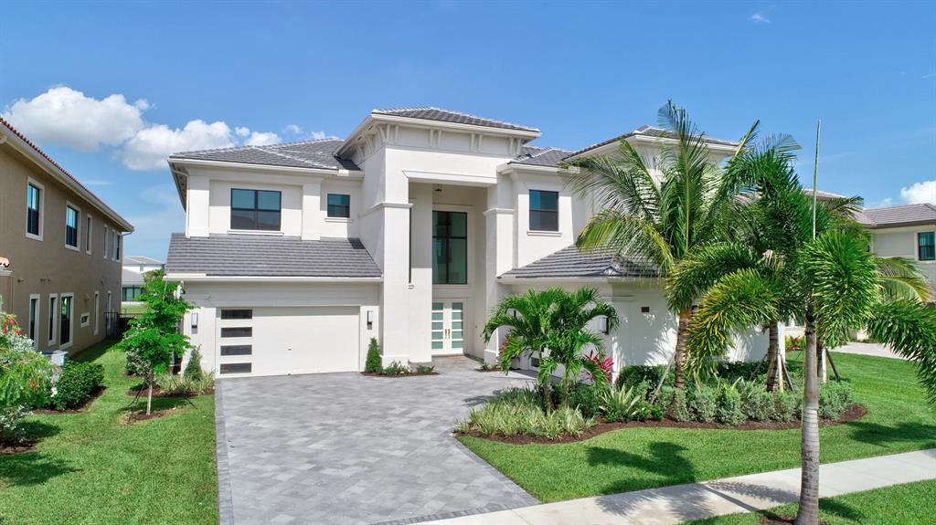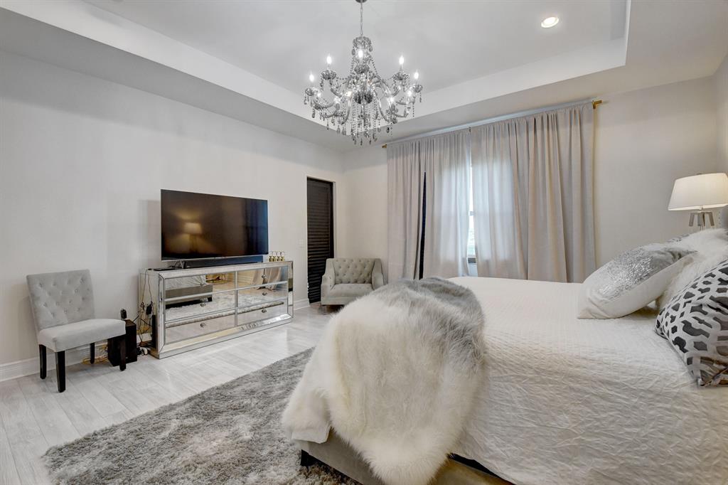 Contemporary RIVERSIDE floorplan with design and finishes by Restoration Hardware. The home overlooks the pool and lake with an east facing backyard. Stunning 2-story foyer. 5 bedrooms, 6.1 baths. Club Room with wet bar with grass cloth covered walls, a private retreat & the loft provide additional living areas. LED fireplace in the great room. Beautiful window treatments. 4-car garage with a fully equipped gym in the air conditioned portion. Porcelain tile in the main living area. Stunning wide-plank genuine wood flooring on the staircase, club room and upstairs bedrooms. Top of the line name brand kitchen appliances; 5 burner gas range. The most up to date warm gold fixtures on the kitchen cabinetry. Heated pool and spa. The side easement adds additional grassy area.