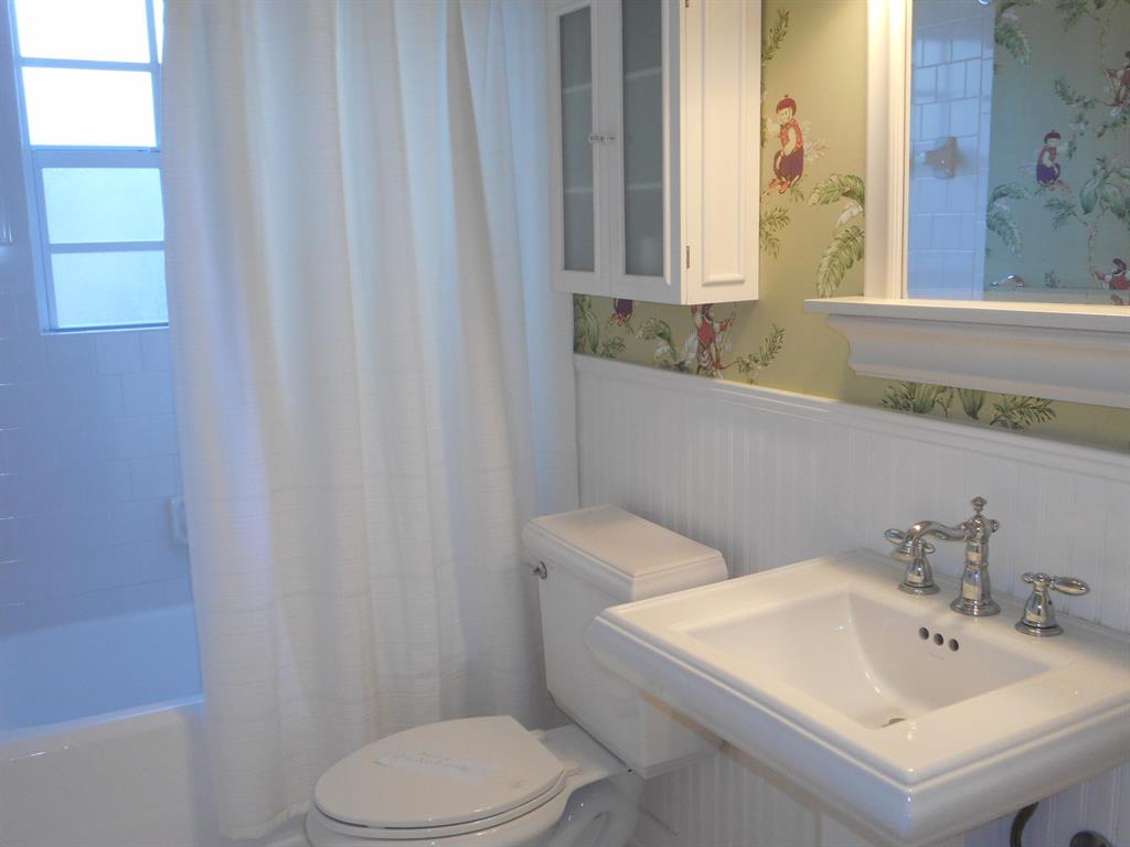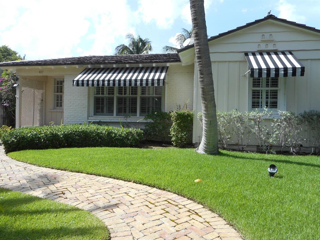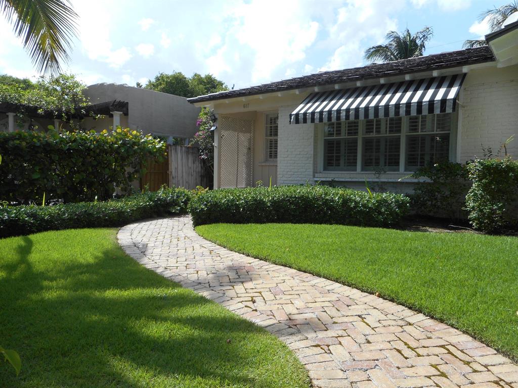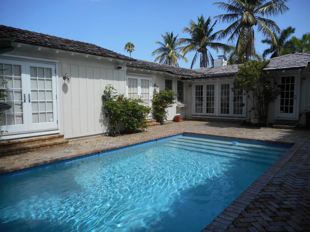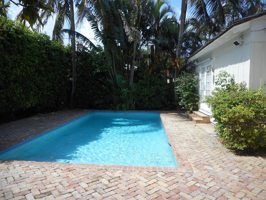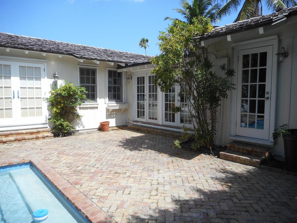 A classic Key West style with brick and board-and-batten siding, shake roof, beamed ceilings, wide plank pine floors in the living room, pine flooring everywhere but master which is carpeted. Many French doors (some impact), fireplace, lots of built-in shelving, crown molding and storage space, brick-floored Florida room, views to the pool from almost every room, plantation shutters throughout. 2-zone A/C, tiled counters and backsplash in kitchen with beadboard ceiling. Chicago brick driveway and walkways. Heated pool with Chicago brick decking. The extremely private back yard is perfect for entertaining and also has an outdoor shower.