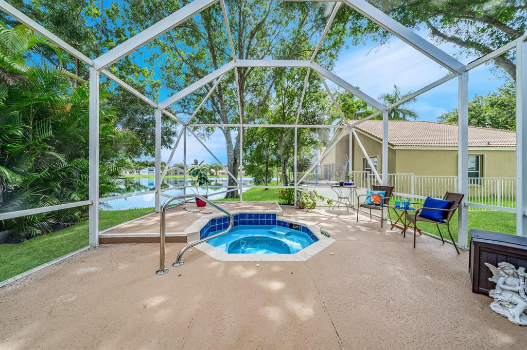 Wow!! 3 bedroom, 2 bath, 2 car garage with spa on lake with a spacious and open floor plan with split bedrooms in Mayfair at Parkland. Well maintaned home by the original owner. Enjoy waterviews and a screened in patio and big backyard. Great curb appeal with vibrant landscaping greeting you as you pull up. Vaulted ceilings! Living areas are all tile flooring. Tons of recessed lighted. Master bedroom features coffered ceilings and his and her walk in closets. Large inside laundry room. Mayfair offers 24 manned gated entry, heated pool, playground, gym, & gazebo. Amazing schools!! Pet friendly community.