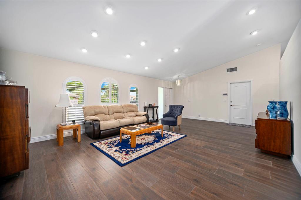 FULLY RENOVATED HOME W/ IMPACT DOORS & WINDOWS IN A FANTASTIC CENTRAL BOCA LOCATION. This home was just redone within the last year w/ all high end modern touches! All light & bright colors schemes throughout, open layout & extra spacious rooms. SqFt added to back of the home to extend the dining room & master suite. Gorgeous contemporary plank tile floors throughout, vaulted ceilings w/ LED hi hats, & a kitchen that is top of the line. The kitchen features white wood, luxor collection cabinets, quartzite counters, & an amazing large Island w/ BOSCH appliances. French impact doors open to a large patio from master, dining & 2nd bedroom w/ room for a pool. Master suite is oversized w/ a large custom walk-in closet, & brand new bathroom w/ dbl sinks & a large glass shower w/ dual delta heads