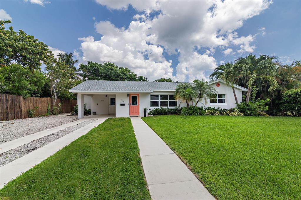 Wait until you see inside of this sparkling, renovated unique South of Southern (''SOSO''), East of Olive home set up as two separate homes or vacation rentals! Flexible floor plan is currently set up as a 3/2 with a separate 2/1 (own entrance & kitchen) but can easily be combined to make a 4/2 plus a 1/1, or simply a large 5/3. Newer roof, A/C, impact windows & doors, kitchens, sprinkler system, landscaping & much more! Enormous lot (11,250 sq ft) with preferred North/South exposures, completely private, fenced yard & pool! Walk to South Olive Elementary, water park, playground & tennis. Flagler bike path & Summa Intracoastal beach at end of the quiet tree-lined street with sidewalks! Short drive to beaches, restaurants, shopping, Palm Beach, Downtown, PBIA & I-95
