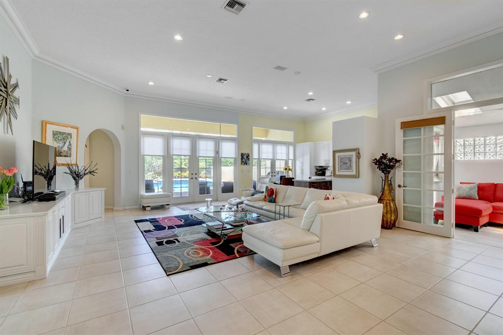 Fabulous 4 Bed+Den 3 baths waterfront pool home that shows like a model can be yours. Updated Kitchen with trendy shaker cabinets, S/S Samsung appliances and Stainless-brick back-splash, contemporary strait edge granite and contrast cook island. Beautiful french doors, spacious and open concept, dental crown moldings, knock down walls, central vacuum, sitting room and a play room/den just to mention a few, New Berber carpet in all bedrooms and new custom closet in the master. Heated Pool has been redone, New gutters, newly painted inside and out, a truly gem, must see