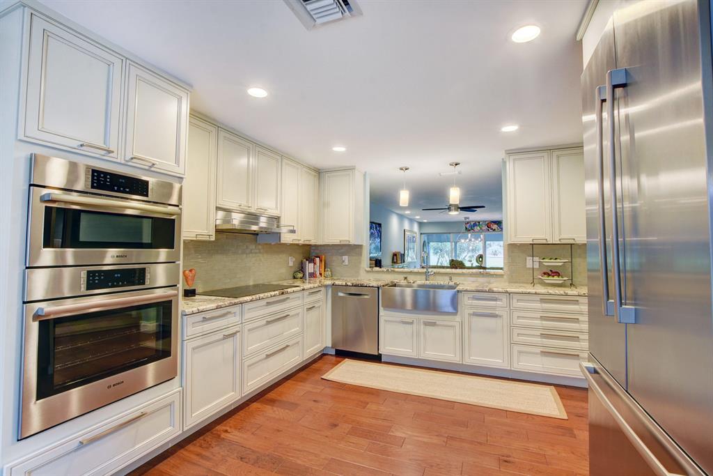 Completely renovated 2716 sf luxury townhome featuring expansive views of Banyan Cay golf course. Covered two space attached carport leads to entranceway patio. Golf and water views throughout first level with floor to ceiling sliding glass doors leading to spacious screened porch. Impact glass windows. Rear porch protected with roll down shutters. Hard wood floors throughout. High end (Bosch) kitchen appliances. Up to date water heater and a/c system. Family room features wet bar and built in wine cooler. Sitting area (84 sf) added to master bedroom. Seller has purchased a HOME WARRANTY policy from Cinch Home Services valid for one year from date of closing.