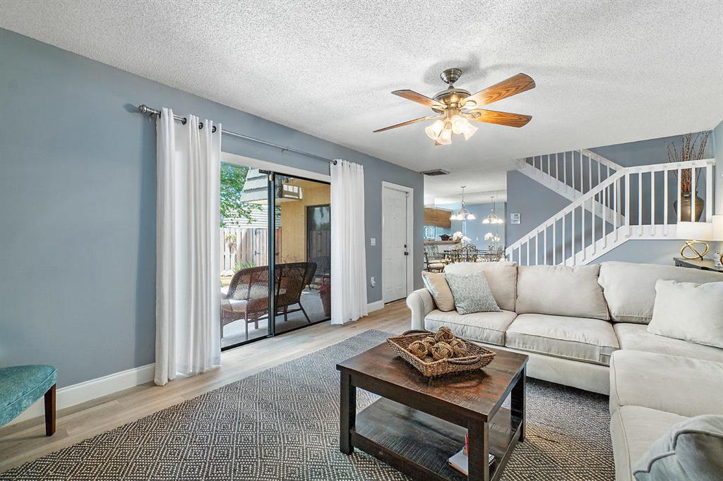 BEST SECTION IN SANDALWOOD! Looking for a well-maintained town home w/ water views? You've found it. Unit has never been rented - owner occupied and it shows!NEW wood plank tile floors throughout 1st floor. NEW AC 2019. NEW water heater 2019. Furniture negotiable. Enjoy sunset views and sparkling lake views. Tranquil and quiet. Basic cable & water included + building maintenance including roof & fence included w/ HOA! Low maintenance and perfect location close to highways, shopping, City Place, Downtown Clematis and 15 minutes to the airport!2 assigned parking spaces. Pet friendly - 2 pets allowed, no size limit (no vicious breeds).