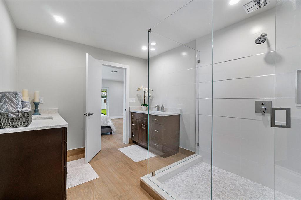 This 4/2-2 car garage w/ almost 2100 sqft under air is truly the best valued home in all of East Boca! This house has an amazing open split floorplan w/ oversized bedrms & large closets. Many features include; a new metal roof, new impact windows-doors-and sliders, new impact rated garage door & opener, new Italian porcelain flooring throughout, unusually large new kitchen w/ lots of storage-a full size pantry & island, huge remodeled master bathrm w/ his/hers sinks & a very large shower, brand new 2nd bath w/ a double vanity, smooth ceilings with LED recessed lights in every room, new extra wide paver driveway, fully fenced in yard, new irrigation & professionally landscaped. All this in minutes to Mizner Park, beaches, shops, restaurants, & zoned for ''A'' rated schools (Addison Mizner).
