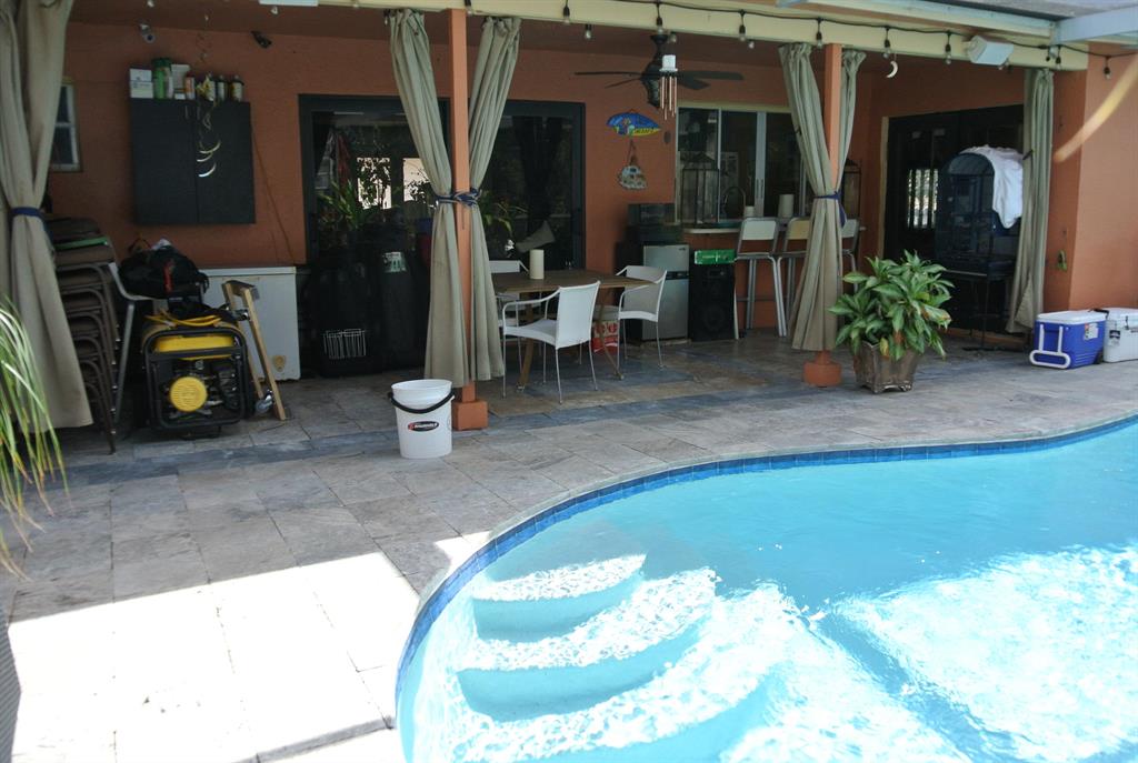 This lovely remodeled and maintained home is like living in a little piece of paradise from the spacious interior and friendly kitchen to it's tropical outside salt water pool and deck over water adorned with various fruit trees including mango,coconut,starfruit,sapodilla, papaya and more. This place has it all in a friendly, walkable community with no restrictions on vehicles or boats this is a Floridian's dream. Come see it soon because it won't last long.roof 10yr, driveway 5 yr, A/C 2 yr, most appliances 1 year. Gas Range, hw heater.Come see this very cute and tropical home!