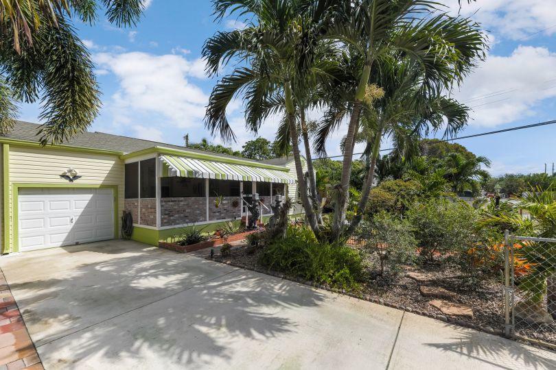 Charming pool home in West Palm Beach just minutes from the Intracoastal, I-95, the airport and gorgeous area beaches. As you approach you will notice the lush landscaping, attached garage and welcoming, screened-in porch. Come inside and be greeted by spacious living areas with gorgeous flooring throughout along with an inviting, eat-in kitchen. Both bedrooms are spacious as well. Step outside and enjoy a lovely patio overlooking the serene pool and very private backyard. This lushly landscaped yard also offers a storage shed.