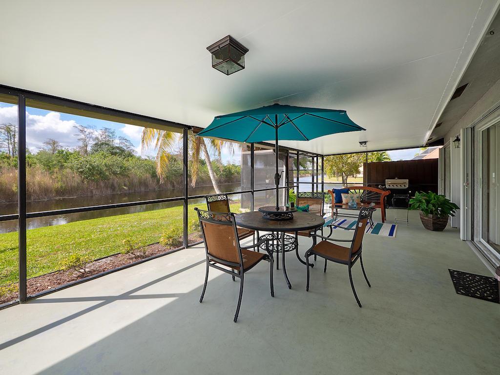Absolutely move in ready home in a fabulous community! Newer tile throughout the entire home! Renovated kitchen with granite countertops and stainless steel appliances. Renovated bathrooms. Newer roof. Enjoy the tropical haven from a spacious screened patio with long views of a large canal. This home is situated on an oversized lot and in a cul-de-sac.