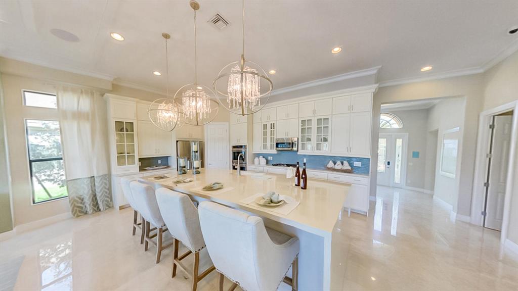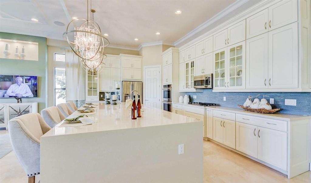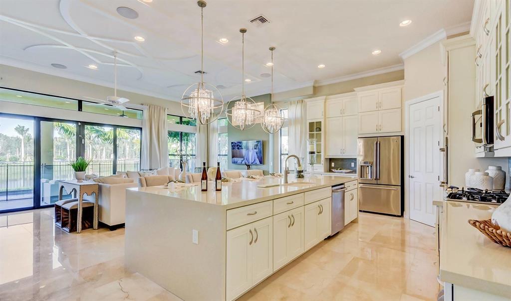 MOVE-IN READY FULLY DECORATED AND FURNISHED 2 BEDROOM, 2.5 BATH LUXURIOUS POOL HOME - Available October - This home has marble floors with a grand entrance with tray ceiling. An elegant white kitchen with a spacious great room with an amazing view. Spacious master with an extraordinary walk-in shower for added luxury. A formal dining room, perfect for holidays or elegant dinners. Enjoy a beautiful pool on the lake with a light fountain with a spacious covered lanai, ideal for outdoor entertaining. Enjoy an all-inclusive 55+, resort-at-home lifestyle with access to countless amenities and activities - 24,000 SF clubhouse, Deli, Gym, Resort Pool, Tennis, Pickleball, Bocce Ball, Card Rooms, Billiards, Ping Pong and More! A must-see community. Home is as is.