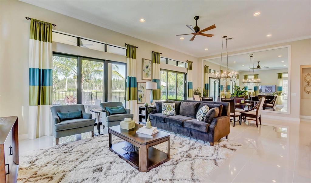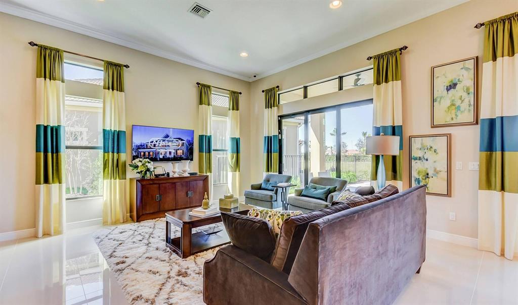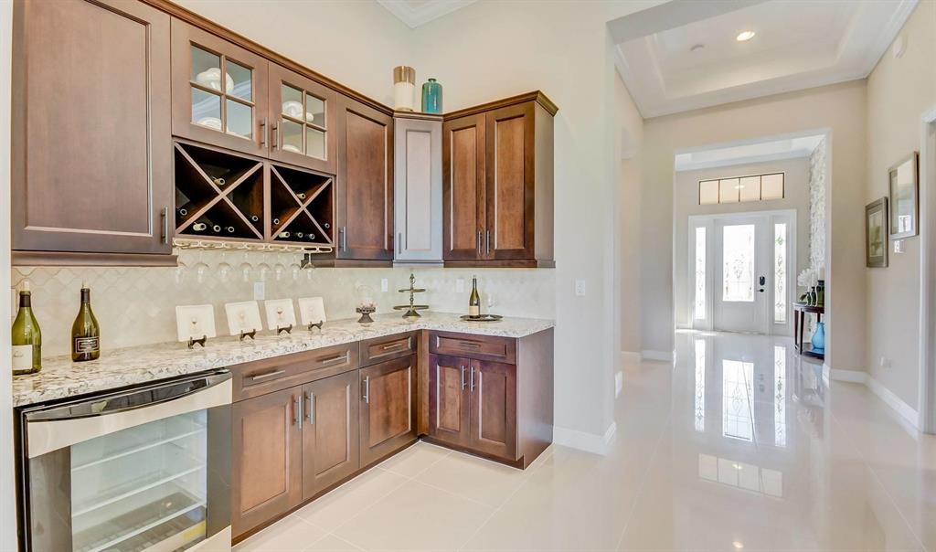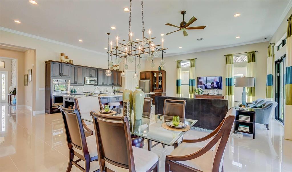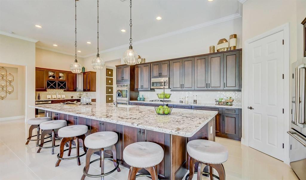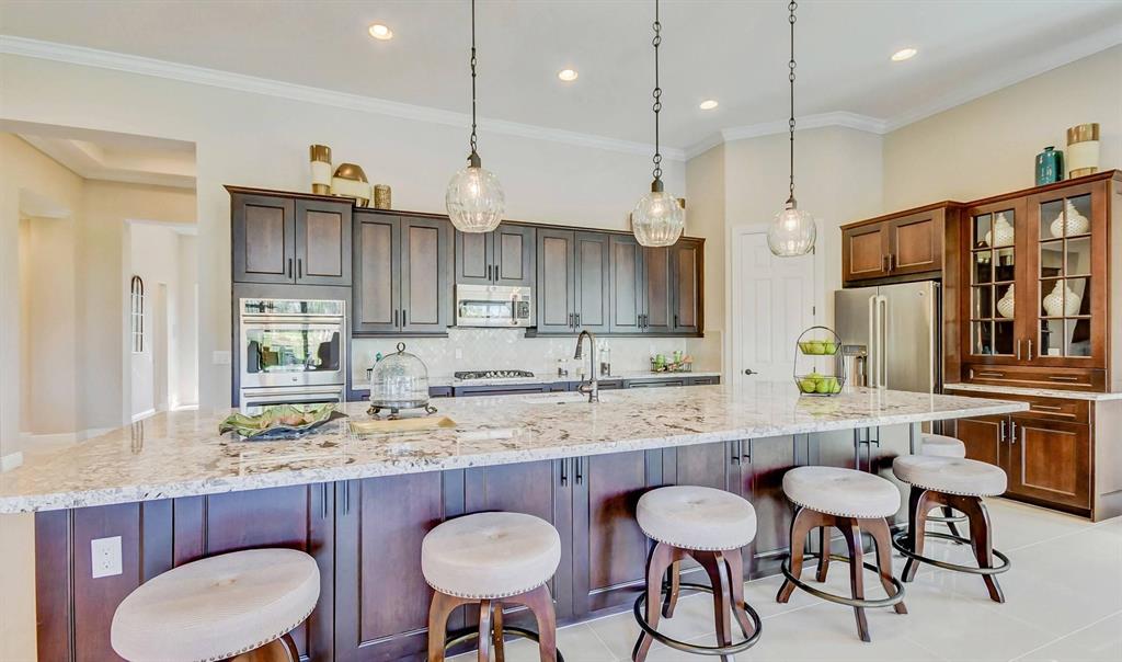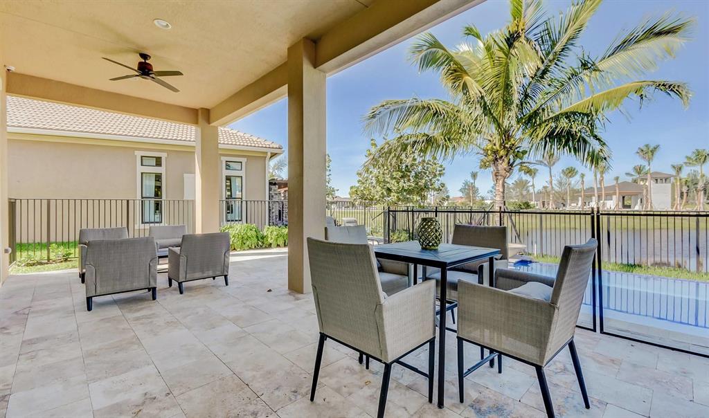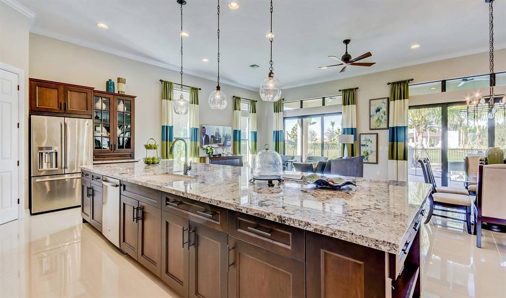 LUXURIOUSLY DECORATED AND FURNISHED POOL HOME - Available October - 2 BED, 2.5 BATH - Inside you will find custom paint colors, crown molding and unique wall-paper throughout home. Owner's suite with owner's spa bath featuring upgraded tile and countertops. The 2nd bedroom is oversized and fits a king size bed with a large walk in closet. The ultra-gourmet kitchen has stained maple cabinets, an oversized natural granite island and stainless-steel appliances. 2 sliding glass doors that lead to the large covered patio and beautiful pool on the lake with fountain. An all-inclusive 55+, resort-at-home lifestyle with access to countless amenities and activities - 24,000 SF clubhouse, Deli, Gym, Resort Pool, Tennis, Pickleball, Bocce Ball, Card Rooms, Billiards, Ping Pong - Home is as is