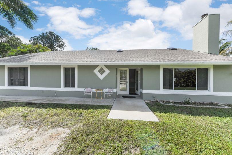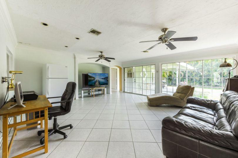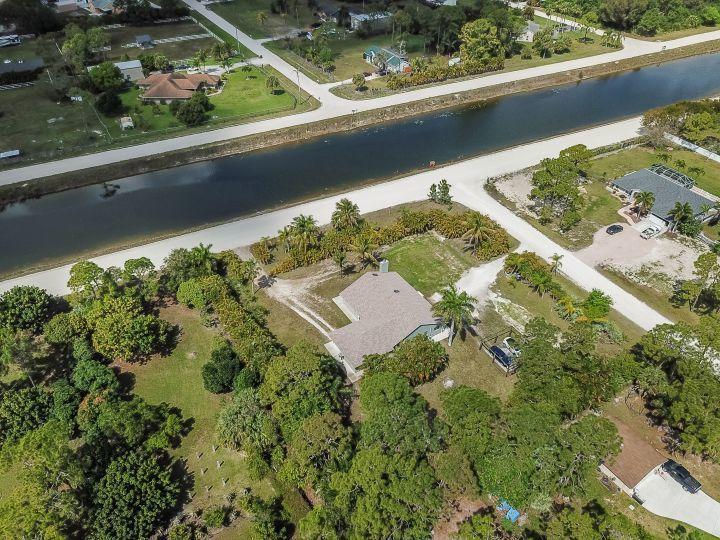 Expansive 5 bedroom, 3.5 bath home situated on almost 1.5 canal front acres with a brand new roof! Come inside through the double impact glass front door and be greeted by spacious living areas in this open, 3-way bedroom split floor plan with skylights, custom molding, rounded walls and tile throughout along with an inviting kitchen. The kitchen boasts tons of cabinetry space. You will also enjoy a lovely family room with wood burning fireplace and soaring vaulted ceilings. All bedrooms are spacious as well and offer ample closet space. Walk outside and enjoy a lovely covered patio overlooking 1.46 acres of lush landscaping making this backyard very private! Bring your pets, kids and RVs, there's lots of room to roam on this lovely property which also offers an RV plug, storage room,