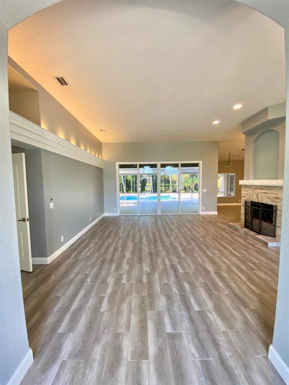 Welcome home, where country meets the city. Enjoy the luxury of this beautifully remodeled home that sits on 1.15 acre of well manicured homesite. It feature a large covered, double doors entrance that invites you into an open floor plan overlooking the sparkling pool, vaulted ceilings and abundance of natural light, new wall to wall porcelain tile. The brand new gourmet kitchen features with 42 inch wooden cabinets, quartz countertops, tiled backsplash, new stainless steel appliances and a breakfast nook. Relax in the winter in your family room with a wood burning fireplace while you look out to your beautiful tropical retreat outside. Luxurious master suite includes two walk in closet. Remodeled master bath with dual sinks, a large walk in shower with frameless door and large jetted tub.