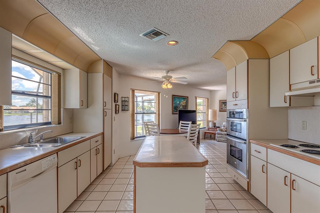 Beautiful, bright 3 bedroom, 2 1/2 bath lake front home with a pool. This magnificent home features a screened pool and patio area for outdoor entertainment. Unobstructed lake views with incredibly beautiful sunsets seen from the family room, pool and patio areas. Perfect setting for the ultimate south Florida living. Open floor plan - vaulted ceilings in living and dining rooms. The home has a split bedroom floor plan, 2 independent central air conditioning systems, 2 and 2 1/2 ton units, sunken living room with bay windows and a double entry front door. The oversized master bedroom has a large walk-in closet with custom built-in shelves. Master bathroom has a separate corner tub & double sinks. Kitchen features island & breakfast area. Separate laundry room is under air. An oversized