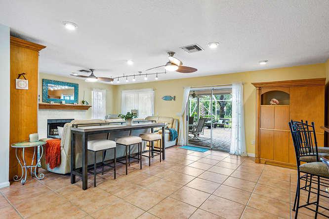 WELCOME HOME to the LARGEST and most BEAUTIFUL LOT in HARBOUR LAKES. SPECTACULAR water views abound on this nearly 1/2 ACRE of manicured lakefront property. Enjoy coffee on your oversized patio with screened in lanai that overlooks your heated pool and gorgeous lake, and pick fresh fruit from your mango, lychee, avocado, orange and grapefruit trees. Step inside your DREAM home perfect for entertaining. There are 5 bedrooms, 4 updated bathrooms, a large family room with updated Coquina fireplace and wet bar, as well as a library with double french doors and den. The functional kitchen has updated wood cabinets and granite counters. Master Suite is DOWNSTAIRS! Newly painted in and out. 5TH bedroom was converted to a loft. Please call for a personal tour or a virtual tour beginning 3/21