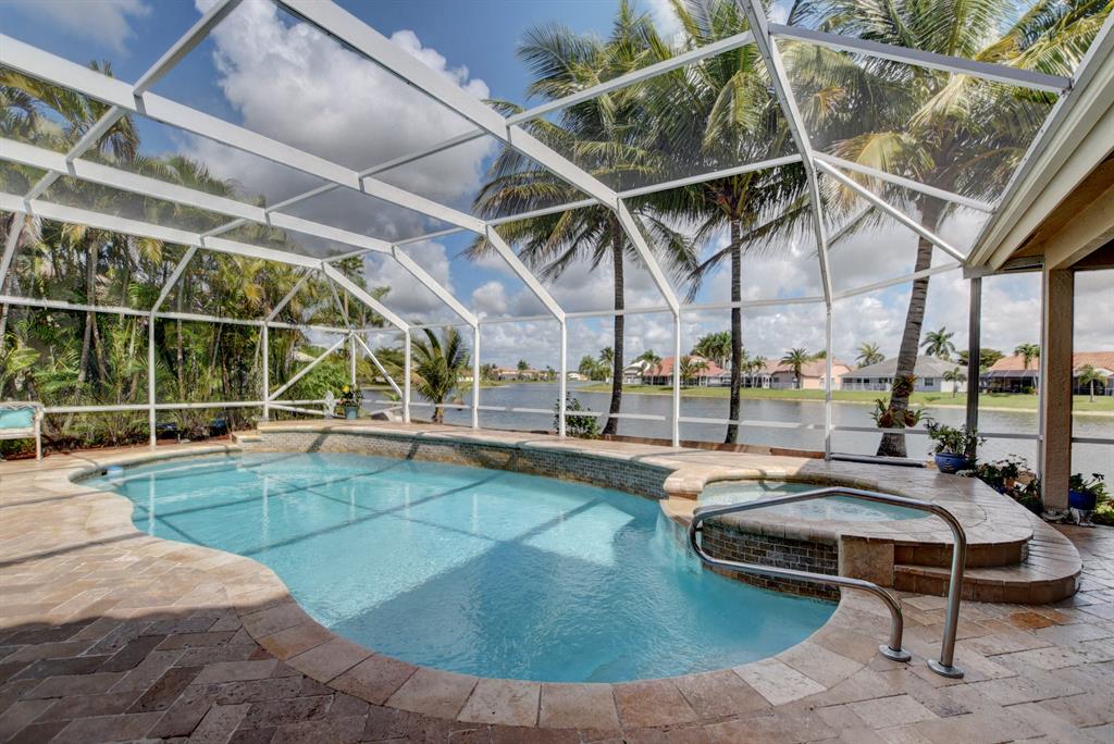 This home is a 6 bedrooms, 4 bathroom showpiece. 3 car garage. Full sized heated pool w/ Travertine deck that overlooks premium lake view. Kitchen with upgrades, Granite and Tumbled marble. High end wood floors in master bedroom. Upgraded wood and granite bathroom and tiled seamless shower. Newer flooring on stairs. High vaulted ceilings. 2019 $45K roof. Two A/C units 2013 and 2014. This is a real beauty. A true 6 bedroom home. Low HOA. 'Walk or bike to 3 'A' Rated Schools. 1 mile away from south county park with outside Amphitheater, dog park,27 hole golf course, nature center, water park, tennis. Great area. Must see!!