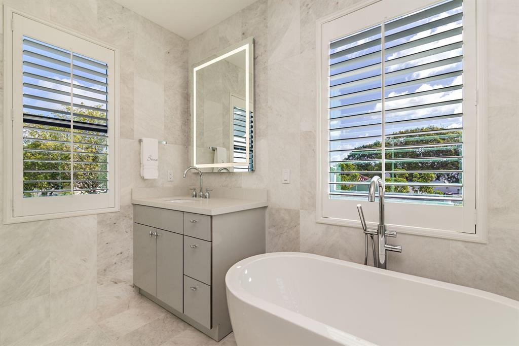 Stunning Flamingo Park compound with bright & open 3BR/1.5BTH home and 2 guest apartments on a delightfully large lot & spectacular location. Totaling 2510 sq ft under air brimming with custom updates, all impact windows in main house, plantation shutters, new white oak floors, fireplace & high hat lighting. The chef's kitchen showcases Taj Mahal Quartzite counters, custom cabinets with Mother of Pearl knobs, stainless steel appliances, gas range & farmer's sink. The double vanity bathroom features handmade Moroccan tiles & glass shower. The beautifully finished guest cottage has 2 studio apartments with modern updates & separate meter, both including washer & dryers and mini split A/C units. Gorgeous, private park-like yard with large patio and lots of palm trees! Furniture negotiable!