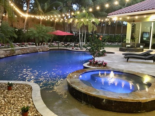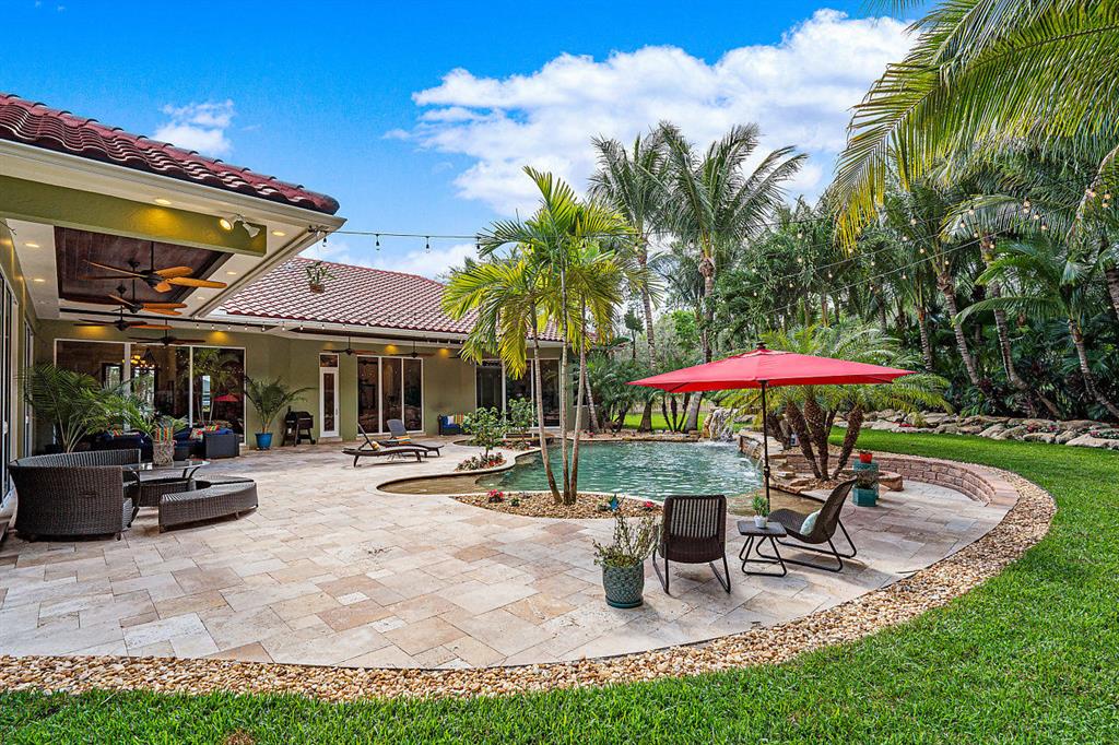 Welcome to beautiful Casa Tua located in Banyan Lakes, a private gated Community. This resort-style estate built in 2012 features a stunning & manicured backyard oasis with beautiful waterfalls surrounding the refreshing salt-water pool. The owner spared no expense in building this gorgeous custom single family home - from the new roof with a lifespan of 50 yrs, to the Jerusalem walnut marble floors, to the 10' sliding hurricane impact doors, this luxurious home is one of a kind. Over 8,500 sq ft. total, 6 car garage, 120' pavered driveway, 6 bedrooms, 5 bathrooms, 15' Cathedral ceilings. All custom kitchen cabinets, granite counter-tops, double stainless steel commercial grade smart appliances, oversize island, smart house/hard wired/smart lighting system. All hurricane