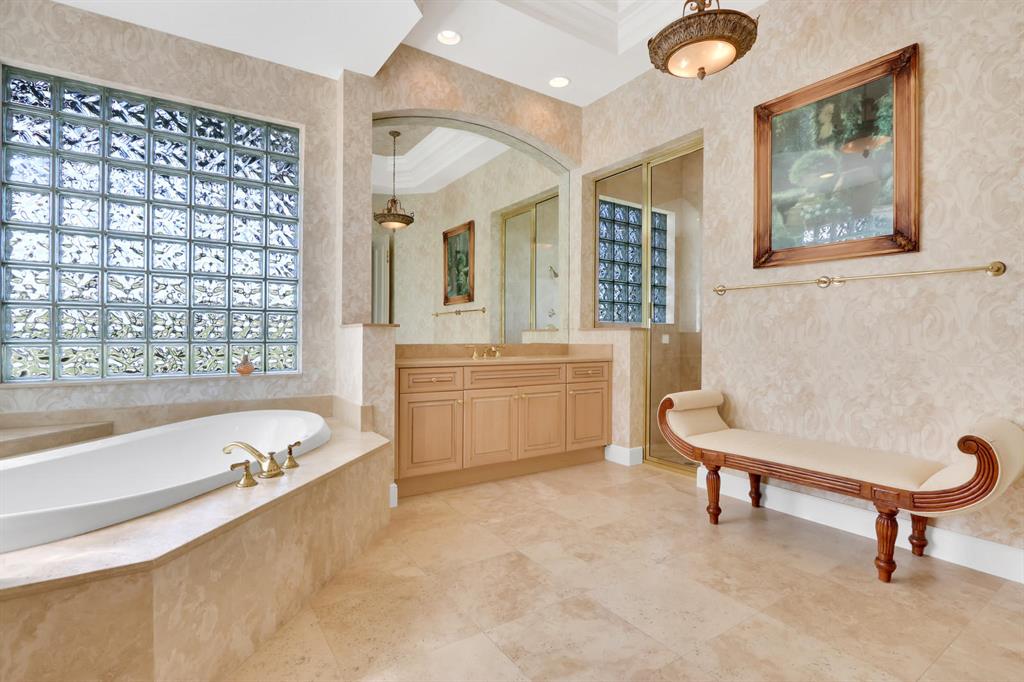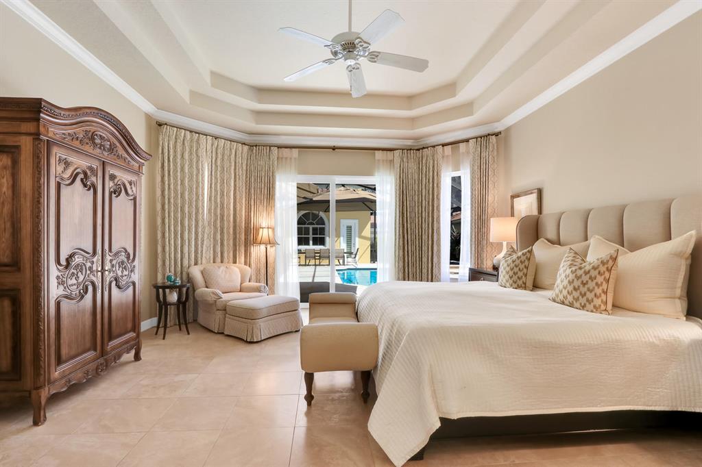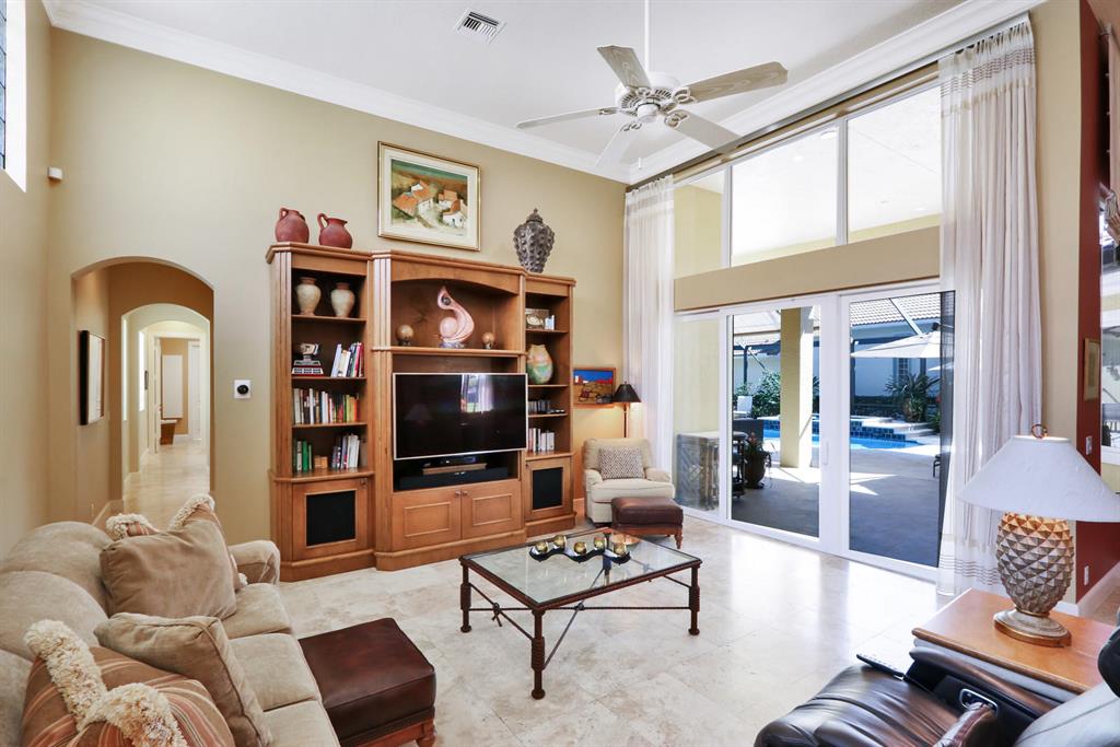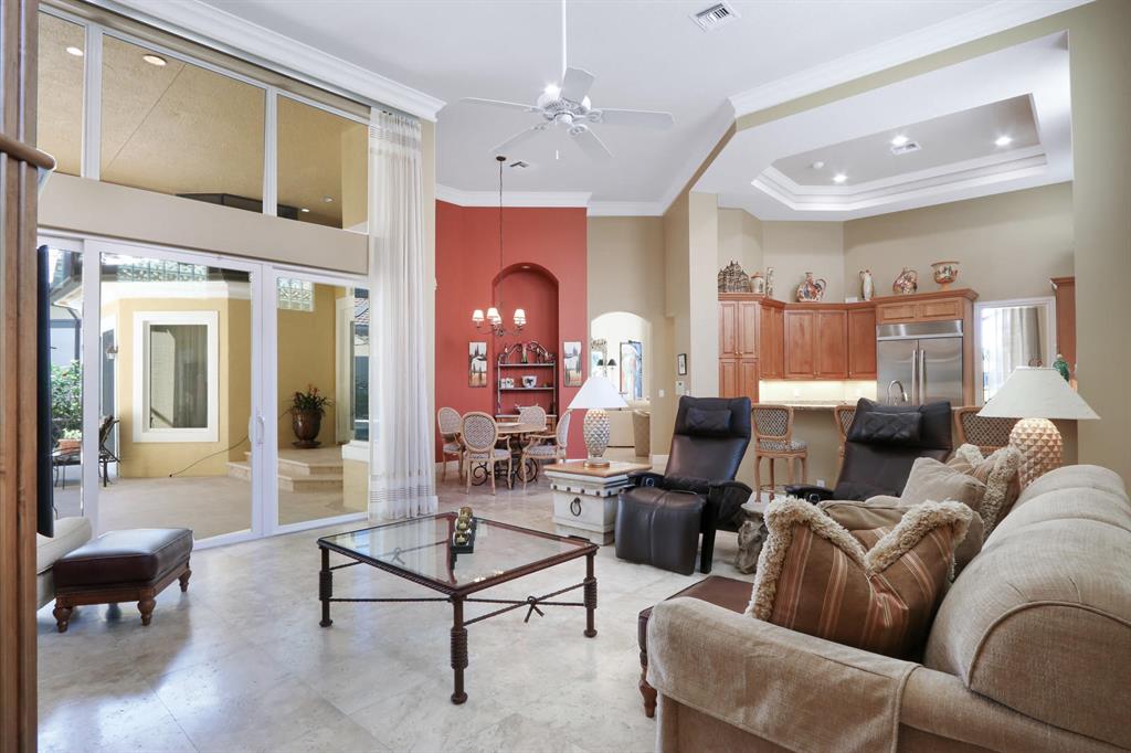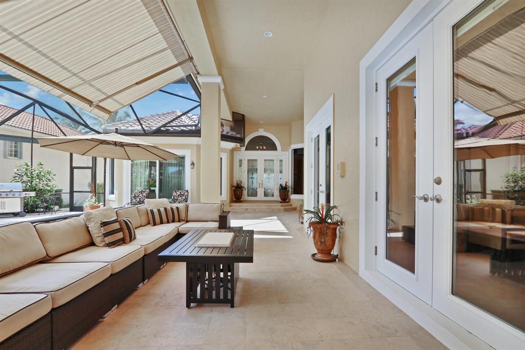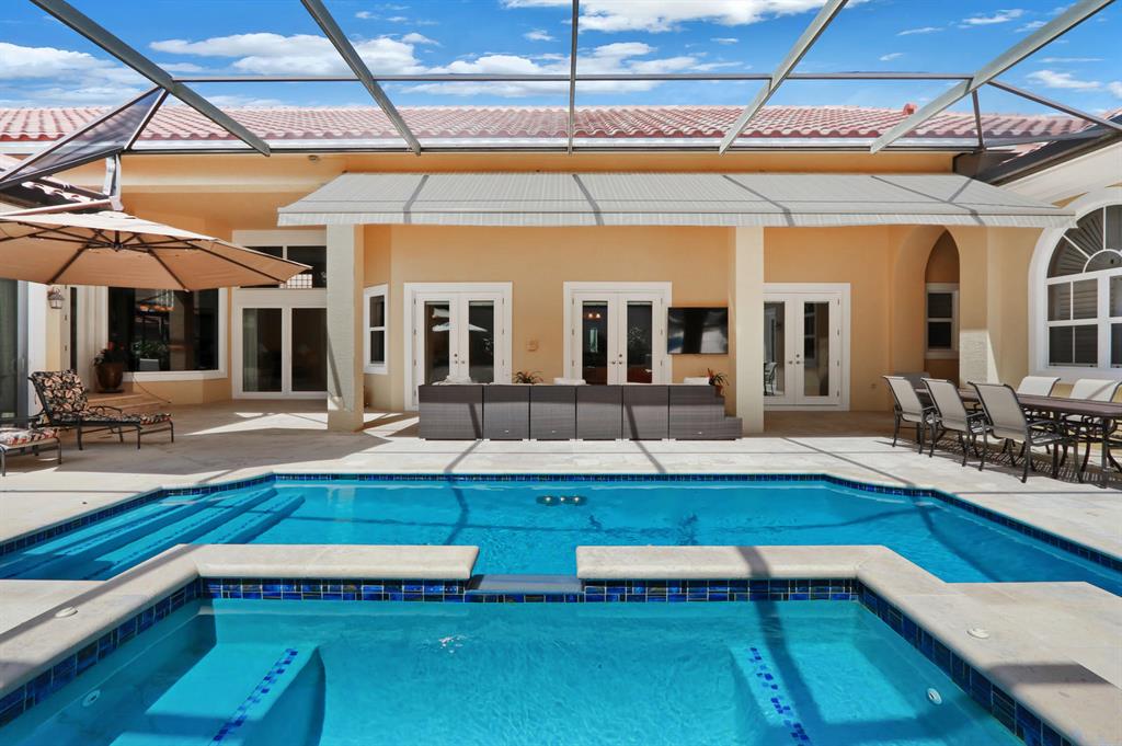 Elegantly appointed, customized and exceptionally upgraded courtyard floor plan boasting almost 3800 SF, including an enlarged guest house. This quality home has been expanded by 400 SF from the standard floor plan. In addition to the fifth bedroom, some of the rooms have been enlarged, elevating this home's ''wow factor.'' This 5BR/5BA home features impact glass windows, a 2019 ROOF (warranty is transferable) and a redone pool and pool deck. One of the five bedrooms is a private guest house, which has also been enlarged from the original floor plan. Marble flooring is featured inside and outside this home and each room overlooks the stunning courtyard area appointed with an elegant retractable awning perfect for relaxing poolside and watching the outdoor television within the fully
