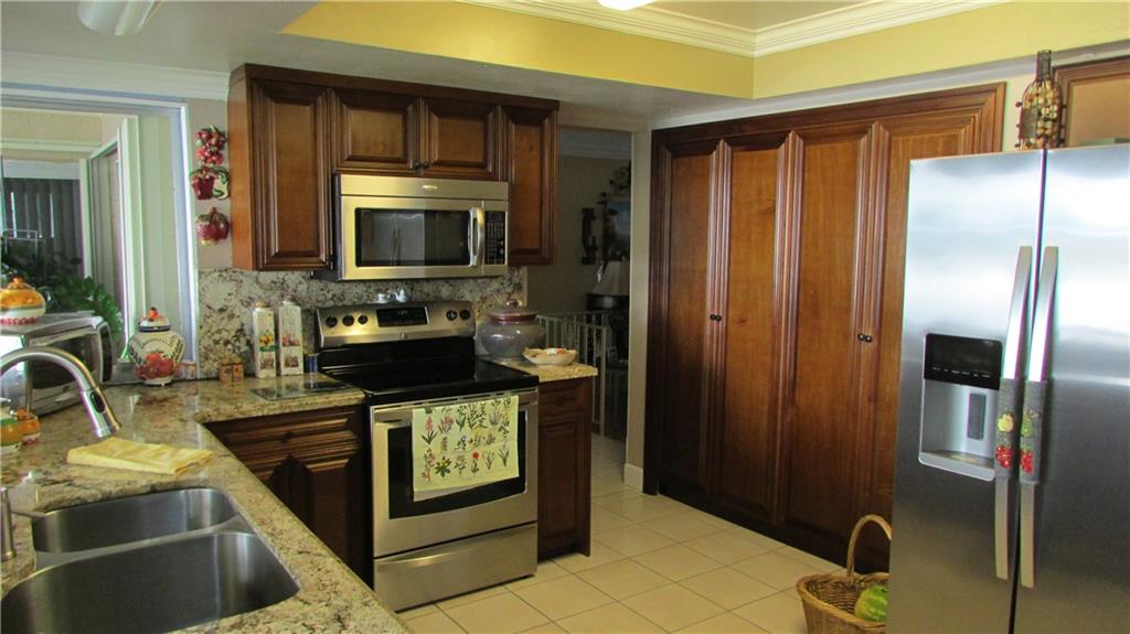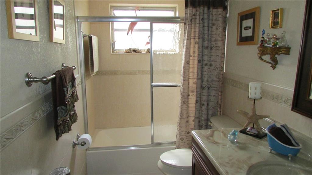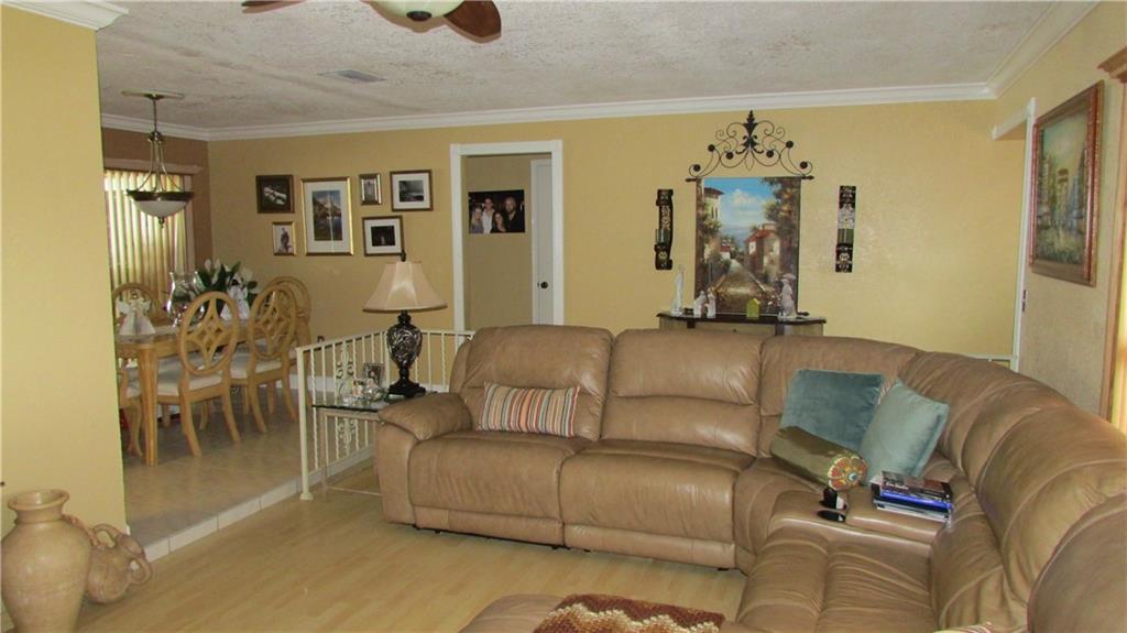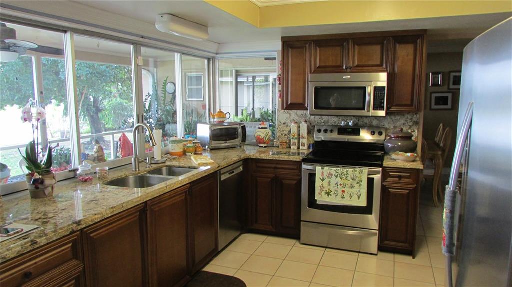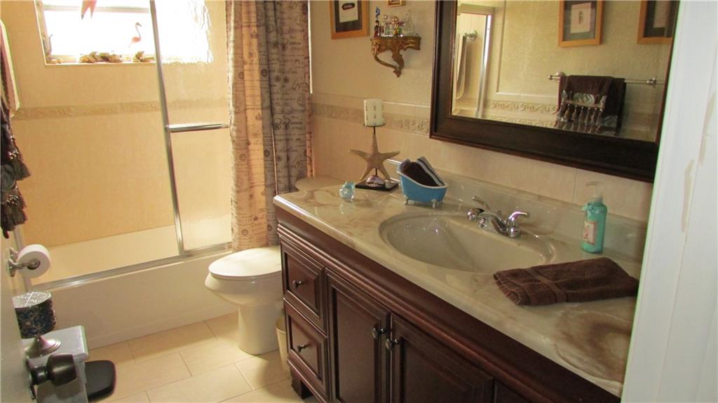 Great Lake Front Home! What a View 80 Feet of Lakefront With Private Dock! Updated Kitchen, Stainless Steel Appliances and Bathrooms, Crown Molding, Tile and Wood Laminate Floors Thru Out. Roofed and Screened Patio, Some Impact Windows, Accordion Shutters and Panels. Extra Den/Office could be Third Bedroom. Stamped Concrete Driveway.