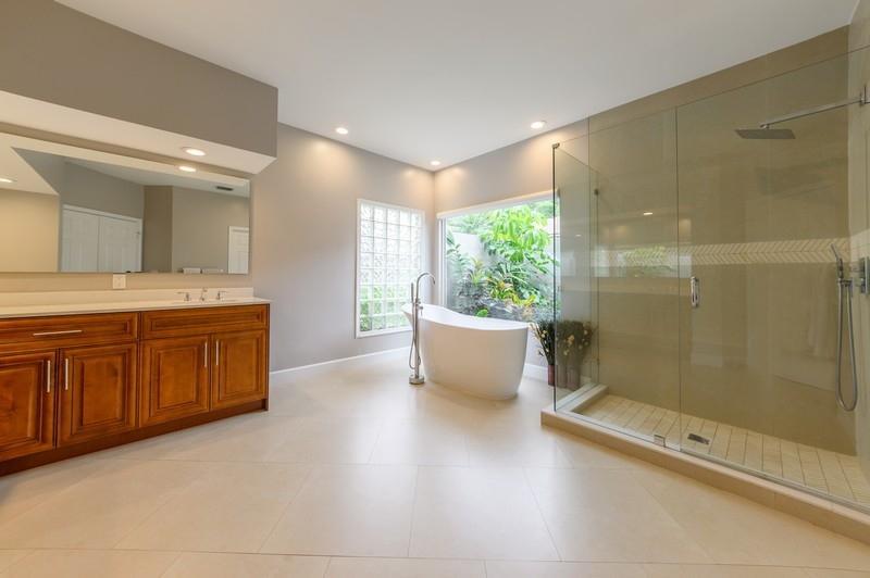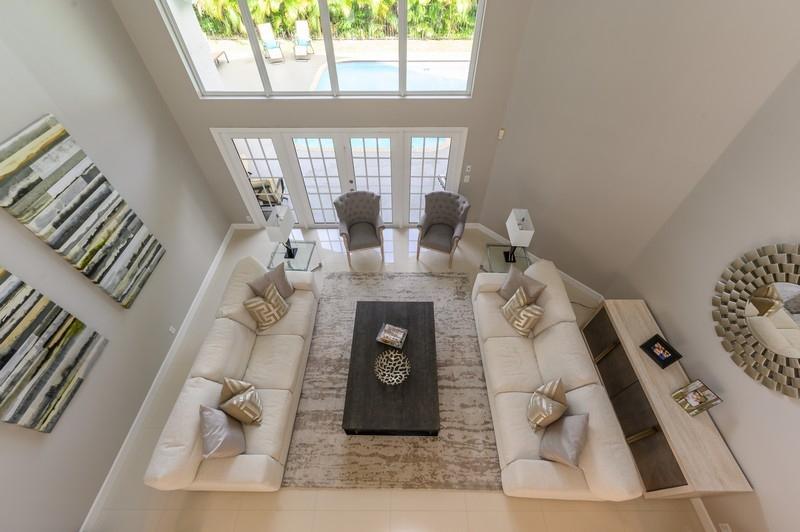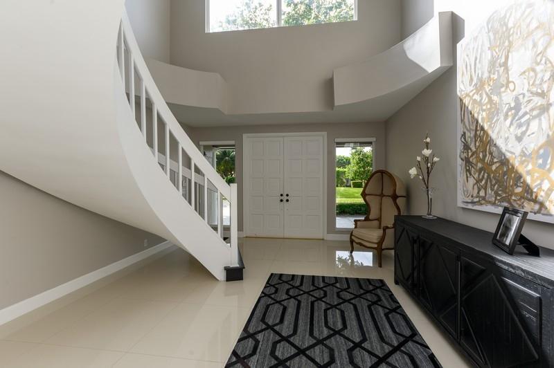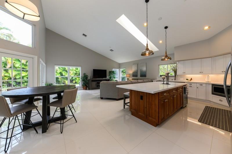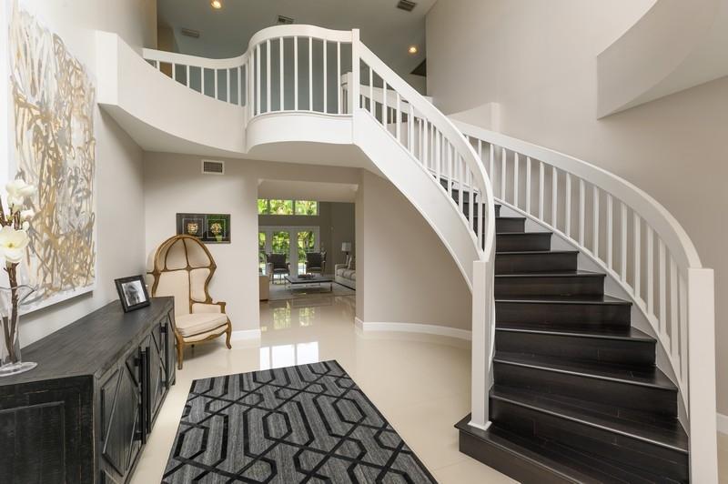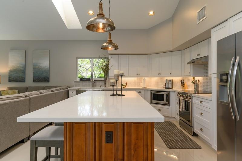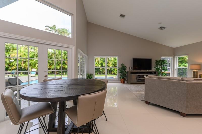 Designer renovated pool home with 5 bedrooms and 4 full baths with nearly 4,000 square feetunder air. Impact windows have been installed throughout. Not a speck of carpet can be foundas the home boasts a combination of newer 32x32 tile and wood floors. The moment you walkthrough this home's double-door entry, you'll know you must make this place your own. Agrand, twisting staircase highlights an airy two-story foyer. The foyer leads to a formal livingroom with a full wall of windows and French doors overlooking the L-shaped pool. To your right is a formal dining roomwith another set of French doors opening to a side patio. Next is spacious kitchen with abreakfast bar island, newer appliances and a stainless steel farmhouse sink.
