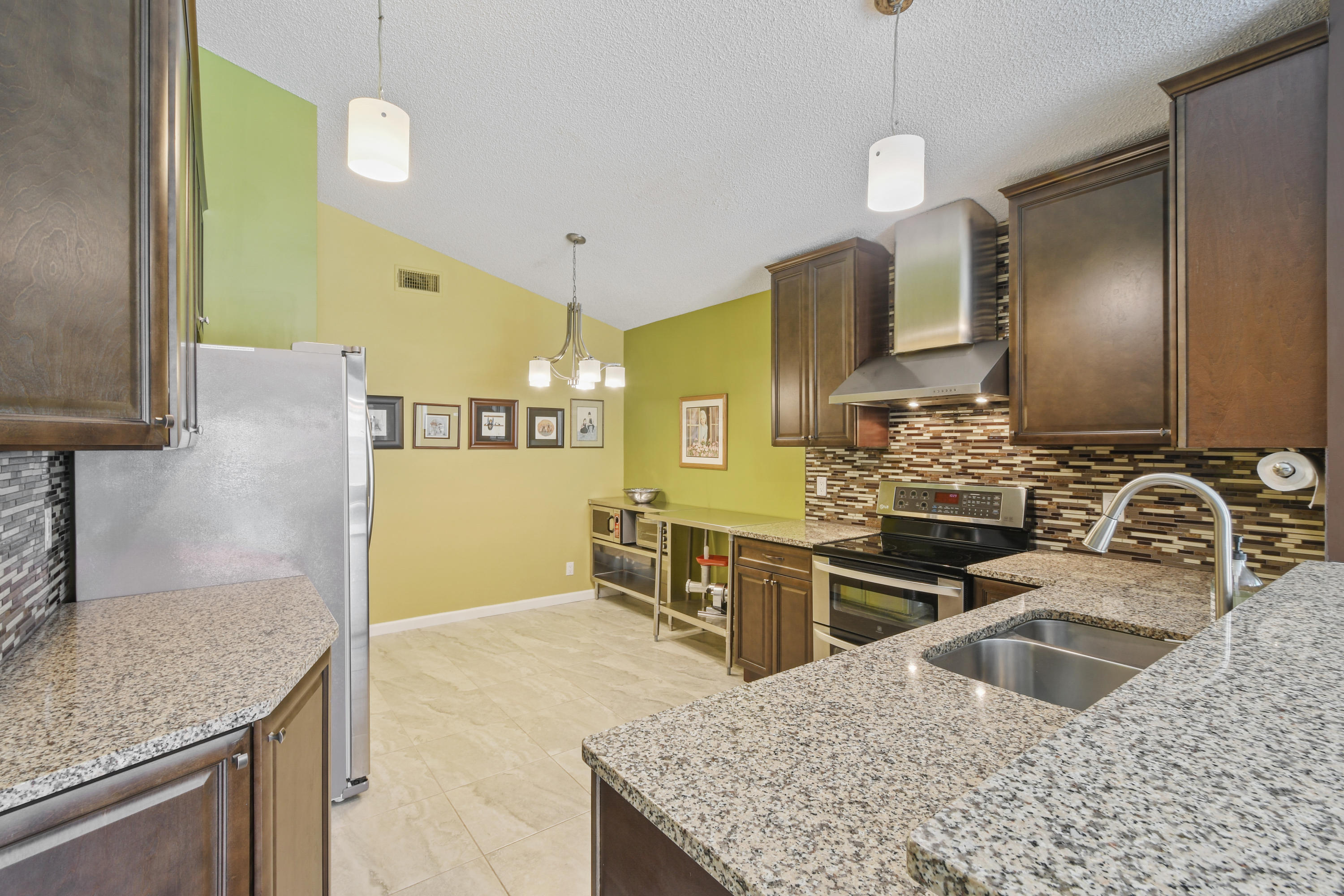 Light and bright 3/2 pool home in La Cristal at Crystal Pointe. Minutes to the beach. Lofty vaulted ceilings throughout the open concept living room, kitchen and dining room. The large well appointed kitchen features granite countertops and stainless appliances. Updated Bathrooms with large master suite. Step outside to your spacious backyard and private pool equipped with child safety gate. Hard surface flooring throughout makes this the perfect home for Florida living. Crystal Pointe is a 24 hour manned gated community offering a Clubhouse, Fitness, Community Pool, Basketball, Racquetball, Tennis, & Playground.