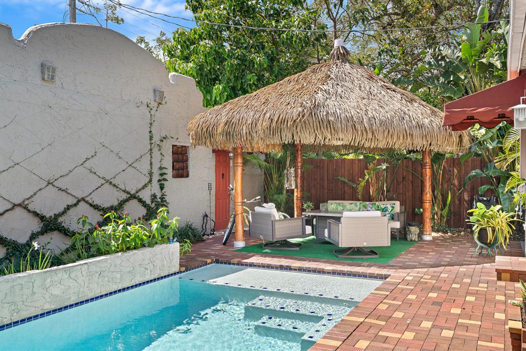 Absolutely stunning Spanish mission home nestled in historic So So section of Belair Main house has 2bd/2ba with a 1bd/1ba garage apartment with a full kitchen and it's own meter/address. This home has been lovingly remodeled and meticulously maintained by it's current owners with high end finishes throughout. The custom kitchen is a chef's dream..all new appliances within the last year. Impact windows and doors, beautiful wood floors, and designer tile in the bathrooms will make you feel right at home! Enter into the backyard and enjoy a swim in the pool or just relax under the Tiki hut. Mature landscaping and new fencing around the property..the only thing missing is you! Call today to schedule a tour!