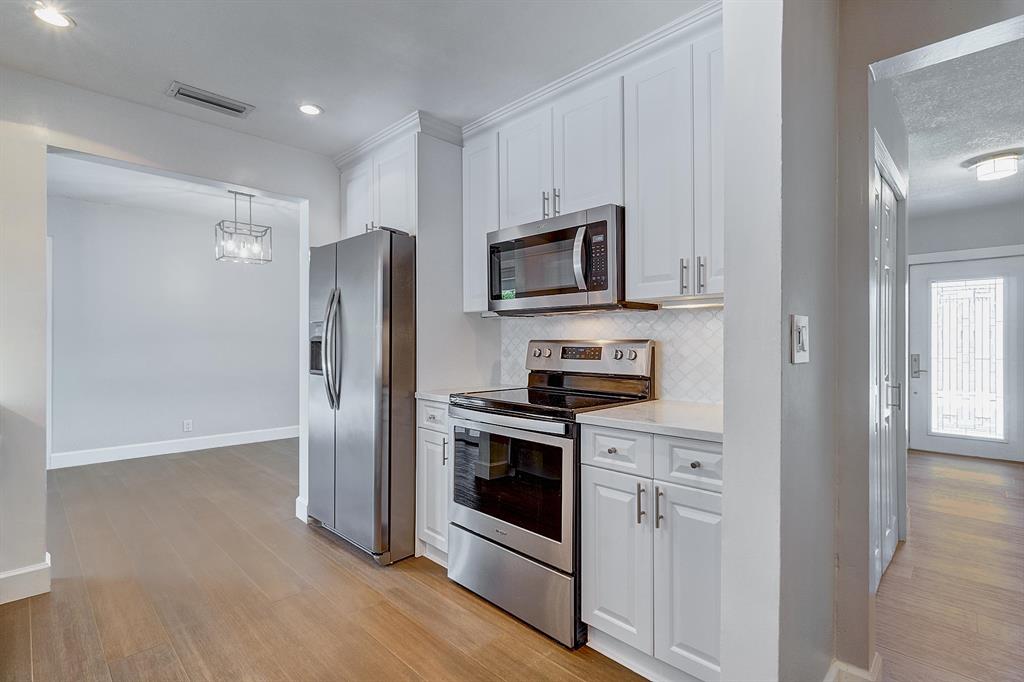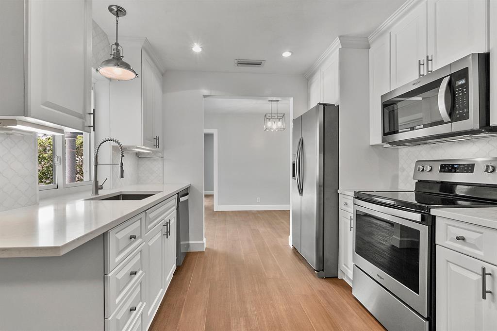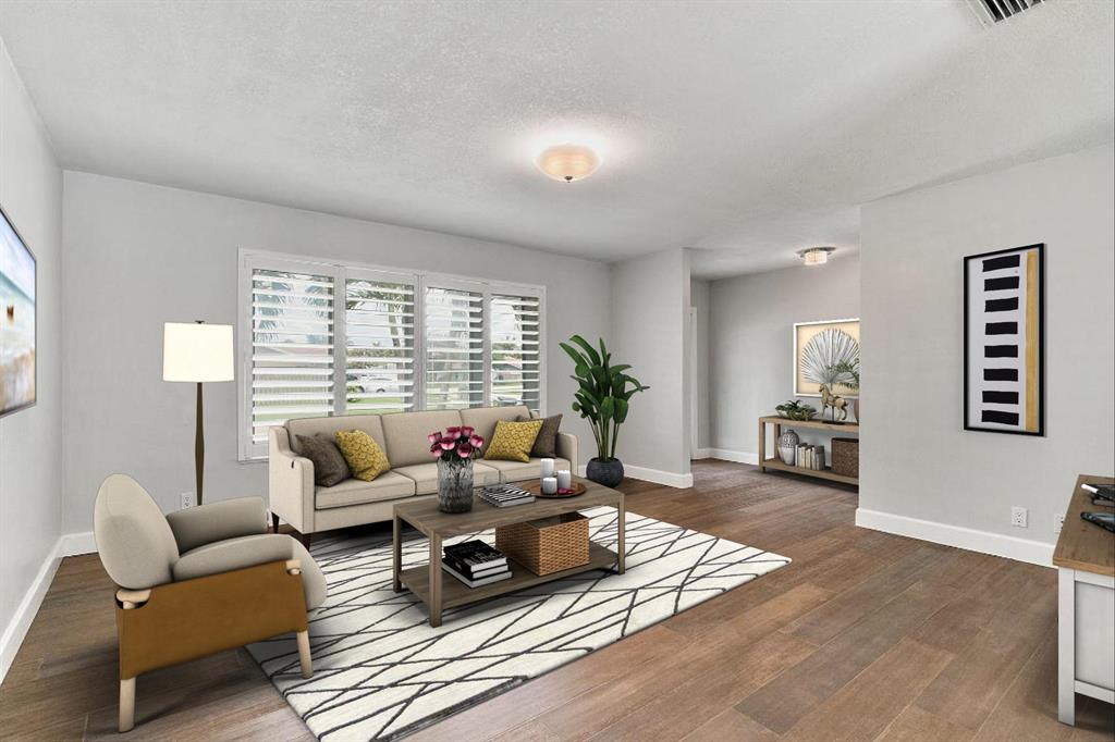 Fantastic Florida tropical living in this beautifully renovated 4/2 East Boca home. 4 Lg Br w/split plan. Impact glass sliders & shutters. New sustainable eco-friendly plank bamboo hardwood floors throughout entire home. Master bath w/marble floor/shower & new quartz ctop. New renovated guest bath w/double sinks & Carrara marble look tile. Gleaming white kitchen w/42'' cabinets, new SS appliances, quartz ctops & Carrara marble bksplsh. Huge covered patio with new diamond brite lg pool & landscaped tropical backyard w/palms and flowers. Perfect for entertaining & enjoying wonderful ocean breeze. A+ schools, shopping,restaurants & beach conveniently nearby. This spotless & impeccable home is truly move in ready with nothing to do except make it your own. Some images virtually Staged