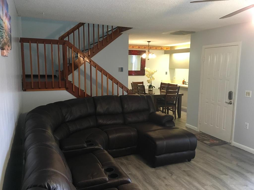 Make this lovely townhouse your new home! Pristine condition, with spacious 2 bedrooms and 2.5 bathrooms, new floors, new AC, impeccable and clean, upgraded kitchen countertop in Quartz, walk-in closet in MB. 2 car parking spaces, washer/dryer in unit. Close to everything. new Ballpark, Palm Beach Outlets, I-95. Well kept community. Water included in HOA fees. Use of 3 Community pools with tennis, basketball, kiddy parks. Roof replaced in 2017 (Roofs and fences taken care of by HOA.