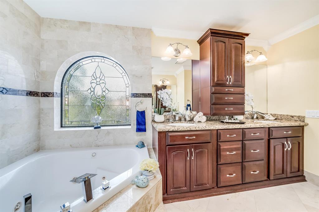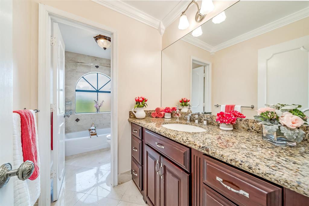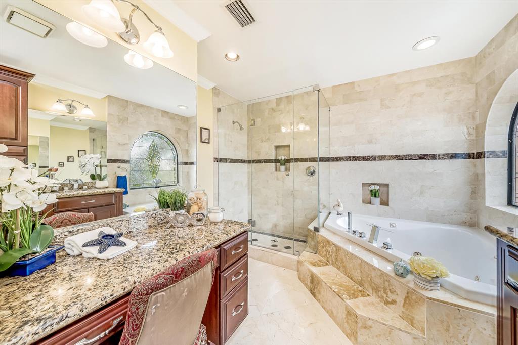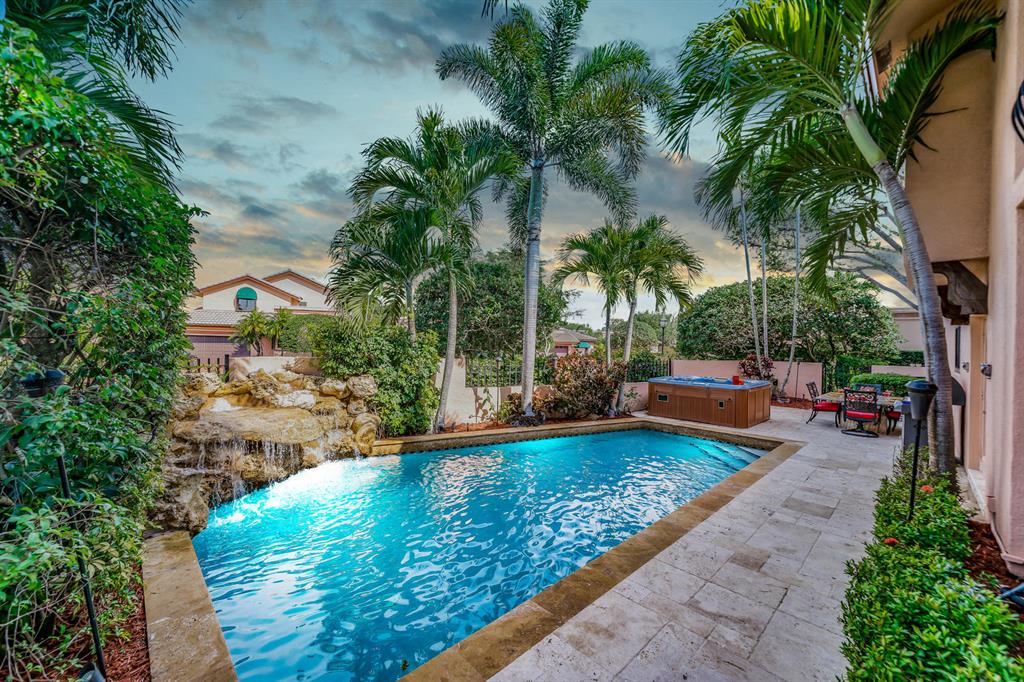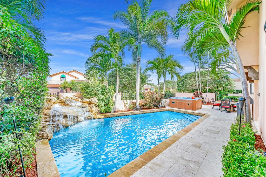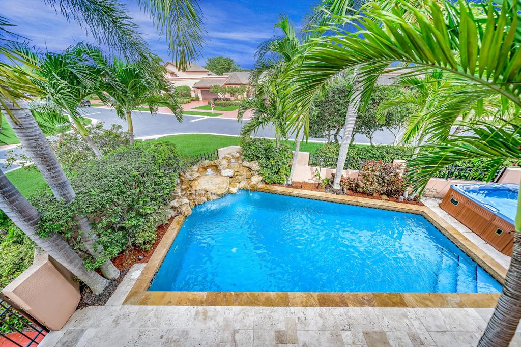 Wow!! Spectacular Mediterranean ''Monte Carlo'' Largest Model Home in Boca Pointe's Villa Flora. Featuring 4 Spacious Bedrooms (all have large walk-in closets) 3 Full Baths/2 Car Garage/Large Corner Lot/Pool with Coral Rock Waterfall. Long driveway leads to the private & elegant wrought iron double gate/dramatic entrance w/soaring ceilings where you really enjoy the sense of openness, volume, & space. Upgrades galore including Opulent Crema Marfil Marble Flooring & Crown Molding is just the beginning. Newer S-Tile Roof from 2008/BOTH A/C units within the past 2- 4 years w/Nest Ther/New Electric Panels/Full repiping of Polybutylene plumbing with copper pipes throughout home. Complete hurricane shutter system. All bathrooms are super updated and drenched in marble from floor to ceiling.
