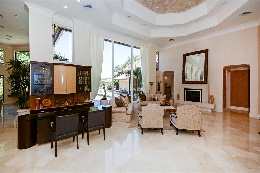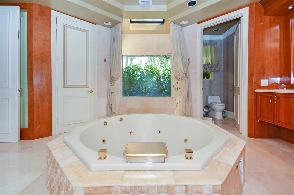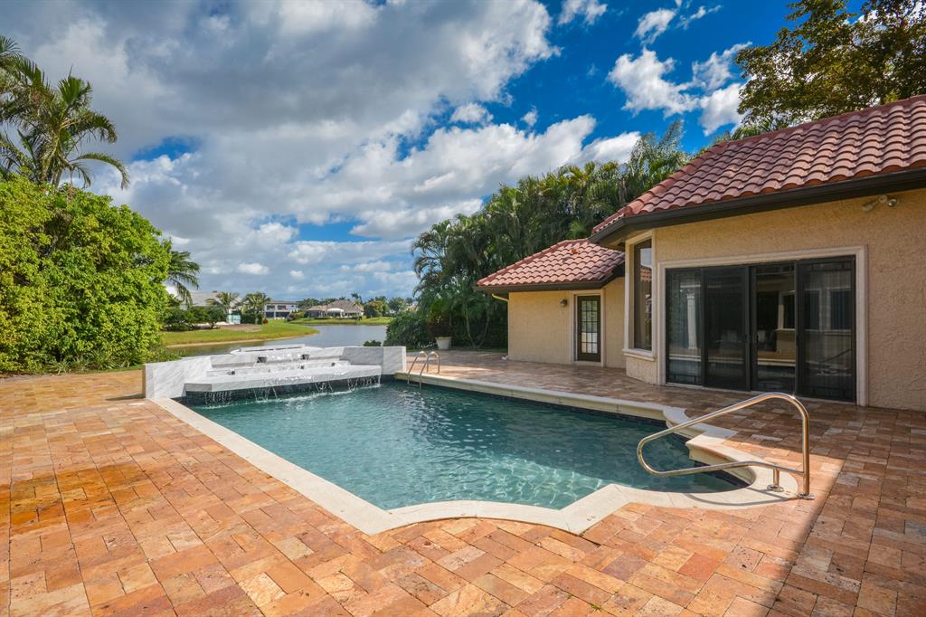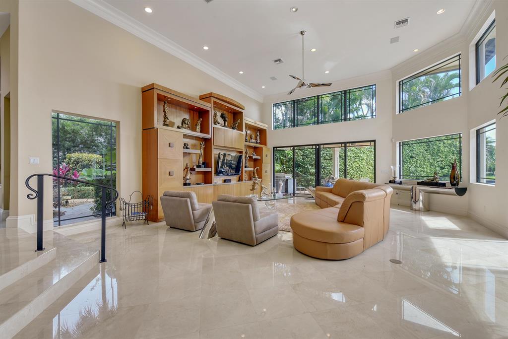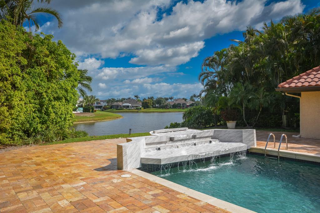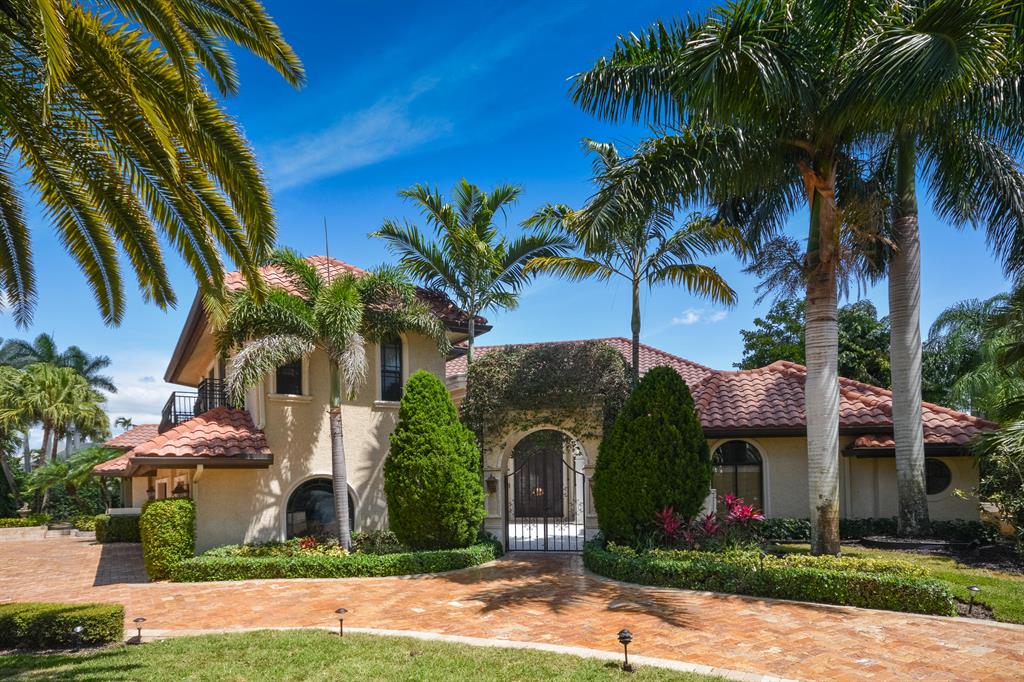 This prestigious residence features 6 bedrooms, 7 1/2 baths and over 6,000 square feet of light filled air-conditioned living space. The dramatic bougainvillea covered gated courtyard entrance opens to grand formal living room with fireplace, formal dining room and rich wood paneled office. A custom contemporary style gourmet kitchen overlooks the breakfast area and family room. The first floor master wing includes a grand master suite with luxurious his and her baths and generous closets. Two separate bedroom wings create privacy for family and guest alike.The second floor features a VIP guest suite and a home theater. The lushly landscaped property features resort style pool and waterfall, covered loggia and pristine lake views. This information is herein is deemed reliable and subject