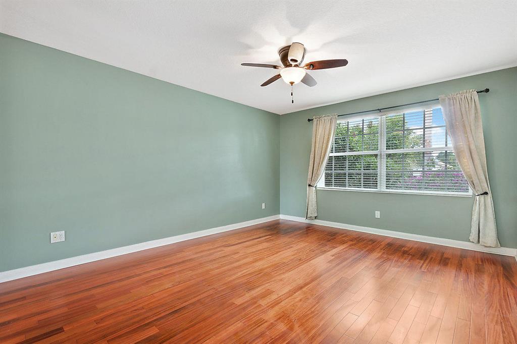 COMPLETELY UPDATED AND REMODELED UNIT! Split Double master bedroom plan. Kitchen comes equipped with UPDATED white cabinetry, GRANITE countertops, diagonal tiled backsplash, UPDATED hardware, STAINLESS STEEL undermount sink, STAINLESS STEEL LG refrigerator and LED flush mount hi-hat recessed lighting. UPDATED fan/fixtures throughout the home. LARGE MASTER BEDROOM features OVERSIZED windows with UPDATED window treatments for tons of natural lighting and a beautiful LAKE VIEW. LARGE walk-in closet with CUSTOM build outs. Master bathroom comes equipped with dual sinks, LED flush mount hi-hat recessed lighting and step down shower. Guest bedroom features UPDATED wood flooring and LARGE walk-in closet with custom build outs. LARGE laundry room with TONS of added storage and utility sink. LARGE