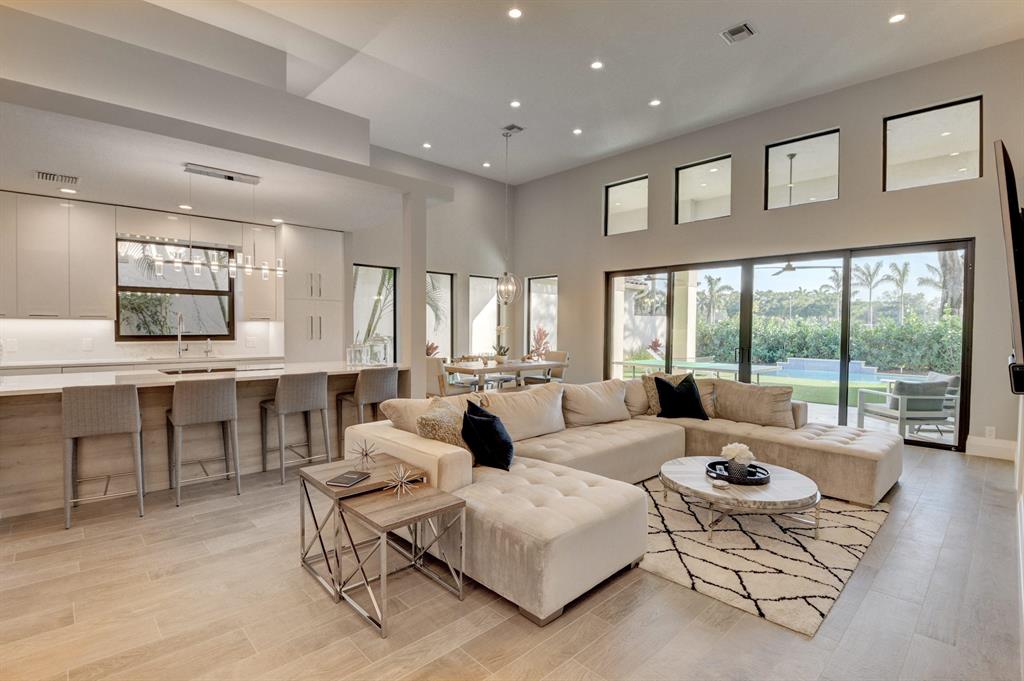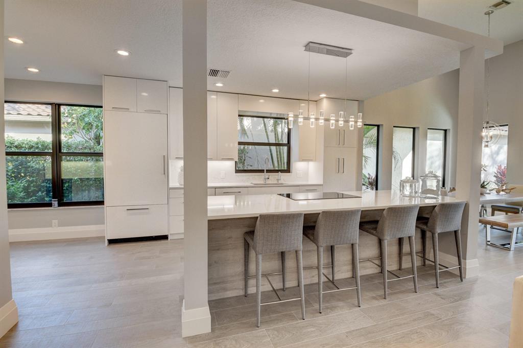 Complete head to toe, remodeled, fabulous, 3 bedroom + convertible den, 3.5 bath home, with impact glass, located in walking distance to clubhouse, pool, spa & fitness center. Ideal private lot with golf course view, & covered patio. The gorgeous modern kitchen is open to living and dining area. Porcelain floors, high ceilings, and tons of natural light are just a few features of this spectacular home. Gorgeous landscaping highlights the entryway and backyard. Enjoy Florida living at its finest in this picture perfect property! Mandatory membership required.