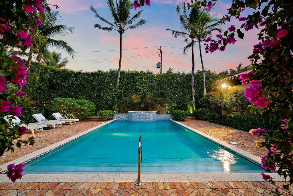 Capture the sea breezes from this exceptional Mediterranean villa located on the desirable ocean block of Brazilian Avenue. This well-appointed meticulously maintained home has an intuitive layout with generous room sizes and an ideal floor plan. Highlights include inviting entertainment spaces, a large first floor master bedroom suite with double baths and closets, library/den, media/play room, office and an eat in kitchen with butler's pantry and French doors that open to the lanai and pool from all main rooms. The property is fully hedged for privacy with lushly landscaped grounds and has a sun drenched serene backyard with large pool and spa. Situated just four houses from the beach yet right around the corner from Palm Beach's finest shops, restaurants, galleries and clubs.