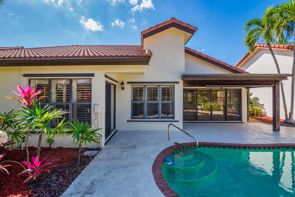 This beautiful home boasts 3 beds/2 bathrooms, 1,738 living sqft, a private pool, covered patio, modern kitchen w/ stainless steel appliances, newer washer/dryer, 13 yr old roof, 7 yr old AC, tile floors in the main living areas, large master bathroom, walk-in closet w/ built in cabinets in the master, and complete with hurricane shutters, panels, garage door so you can get your insurance discount. The friendly neighborhood of Villa Nova has very low HOA fees and is conveniently located across the street from Del Prado Elementary in central Boca Raton. Everything you need is a short distance away as well such as grocery stores, the Boca Raton Town Center Mall, parks, schools, highways, and places of worship. This is a highly desirable location. Call or text the listing agent for showings.