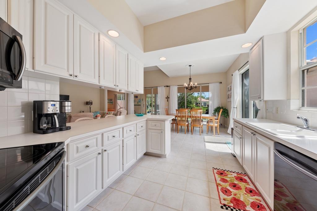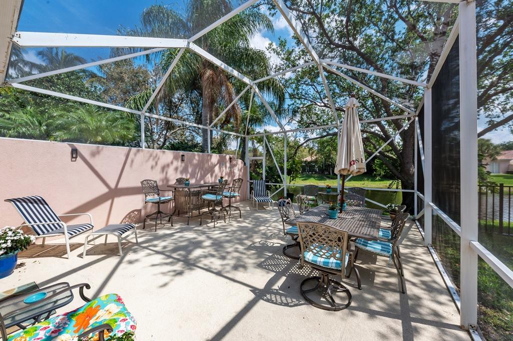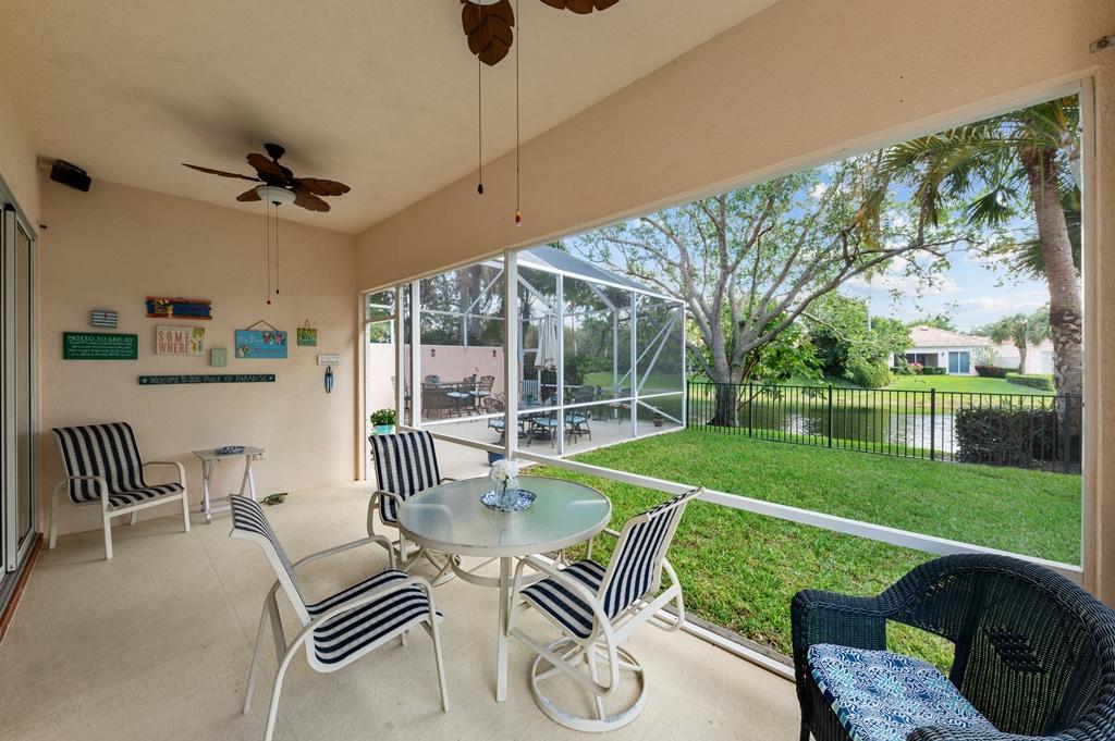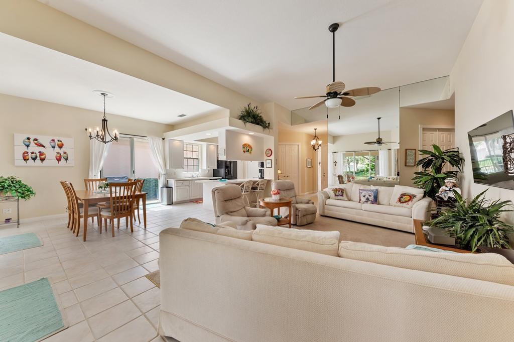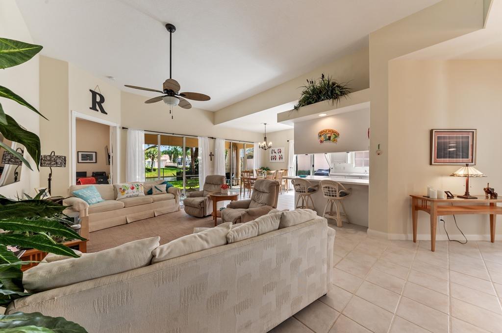 This Oakmont is the Perfect Residence to Create the Perfect Florida Residence! It has been Maintained & Upgraded so, that One Lucky Buyer can Just add their own Personal Touches & have the Home of their Dreams! There is a Covered Entry that Opens to the Tile Foyer that leads to the Tile Great Room with a 12 Foot Ceiling with a Mirrored Wall & also the Tile Dining room, that combined with the Great Room have 18 Feet of Sliding Glass Doors that Open to a 22 Foot Screened Lanai with a Bonus Screened Terrace approximately 20x11 that overlooks the Landscaped Grounds & Broad Lawn & have Views of The Tranquil Lake! It also has another Set of Sliding Glass Doors that open to a Private Landscaped Patio! In addition there is an Inviting Carpeted Den/Office off the Foyer & the Kitchen with an