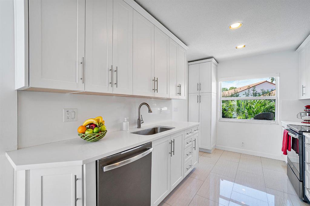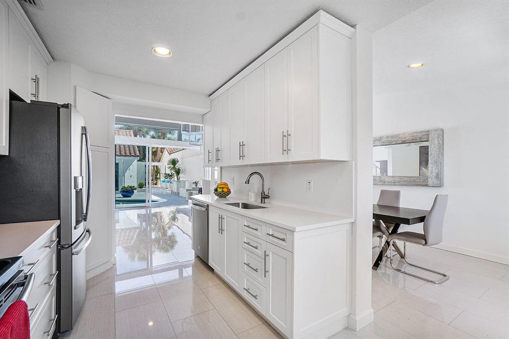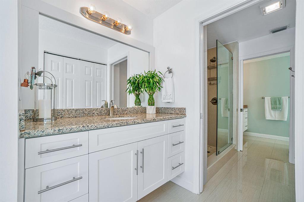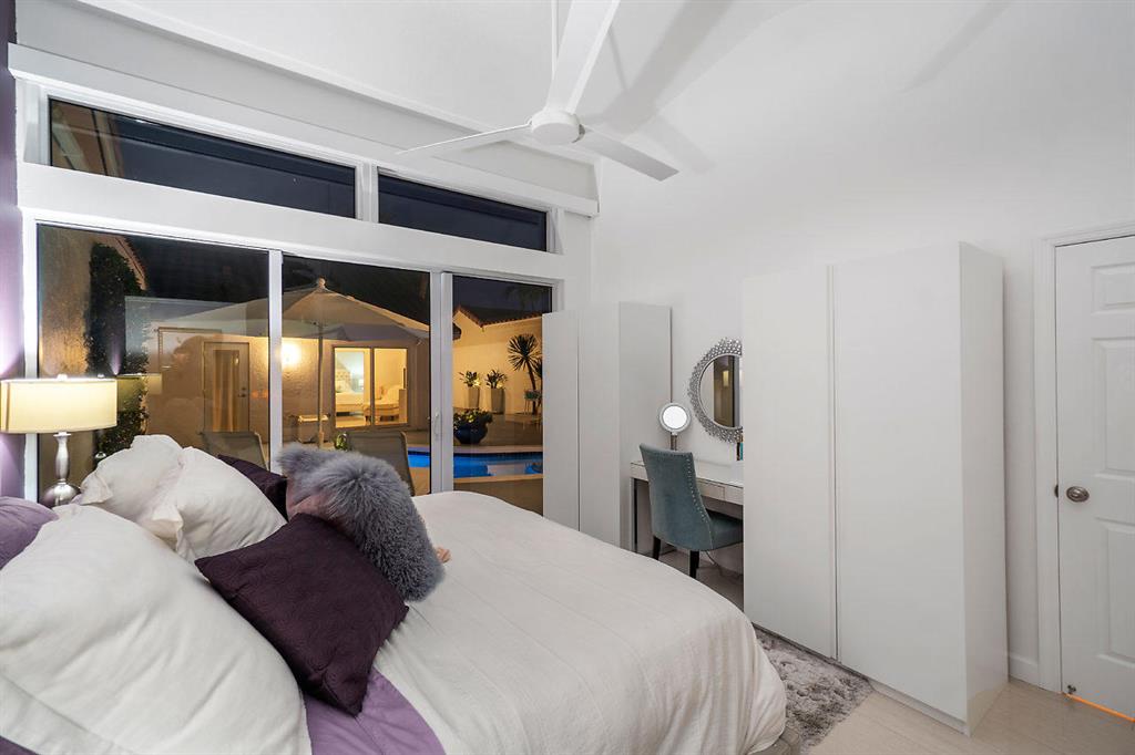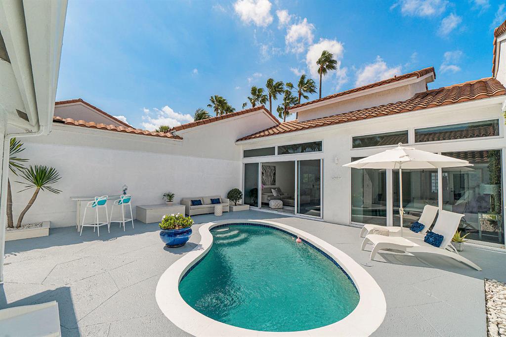 New York City Style meets Boca Raton...This Ultra-Modern Chic showplace home is loaded with upgrades and features. The Home...4 Bedrooms, 3.5 bathrooms, large private courtyard with heated salt-water pool, a rear patio landscaped for privacy, 2 Car Garage, 1,716 square feet under air, 2,934 Total Square feet, and a 949 square foot courtyard. Plenty of room for you, your family and friends and all the toys!The Layout...The main house features a ground floor master suite with stand-alone soaker tub, and a second floor ensuite bedroom. The guest house has 2 bedrooms and a full Jack & Jill bathroom. Extremely light, bright, open, and airy! Upgrades and Features...All Hurricane Impact windows and Doors except master bathroom glass block window with shutter protection. New Quartz counter top